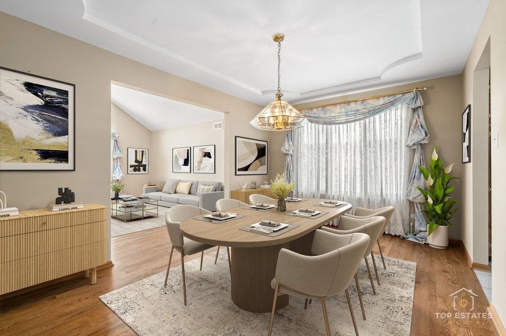 Exquisite custom-built two-story home in the highly sought-after Old Oak Estates East subdivision, offering over 3,000 sq ft of above-grade living space. This residence perfectly balances luxury, elegance, and comfort, featuring Anderson windows, a whole-home central vacuum system with outlets in every corner, and meticulously maintained interiors with premium upgrades throughout. The main level showcases a spacious family room with hardwood floors and a gas-start wood-burning fireplace. The gourmet kitchen is equipped with brand-new stainless steel appliances, all under warranty, quartz countertops, stone backsplash, large island, huge pantry, and abundant cabinetry. The breakfast area opens to a beautifully landscaped, oversized backyard, ideal for entertaining or private relaxation. A powder room and laundry with sink complete the first floor. Upstairs, the primary suite boasts vaulted ceilings, a massive walk-in closet, and a spa-inspired ensuite with whirlpool tub, separate shower, and double vanity. Three additional bedrooms-three with walk-in closets-share a generous full bath. The staircase has been updated with custom wrought-iron railings, adding an elegant architectural touch. The finished basement is designed for upscale living and entertainment, featuring a theater room, second kitchen, and expansive L-shaped recreation room. Additional highlights include a 2.5-car attached garage, new high-efficiency furnace, new air conditioner, new hot water heater, and newer roof-all with active warranties. This house offering a true move-in-ready luxury experience. A rare opportunity to own a home with exceptional craftsmanship, premium upgrades, and extraordinary outdoor space