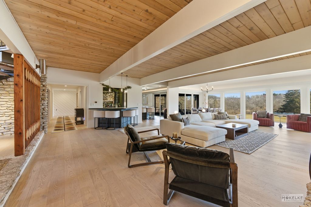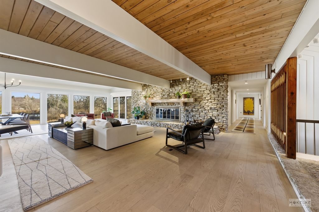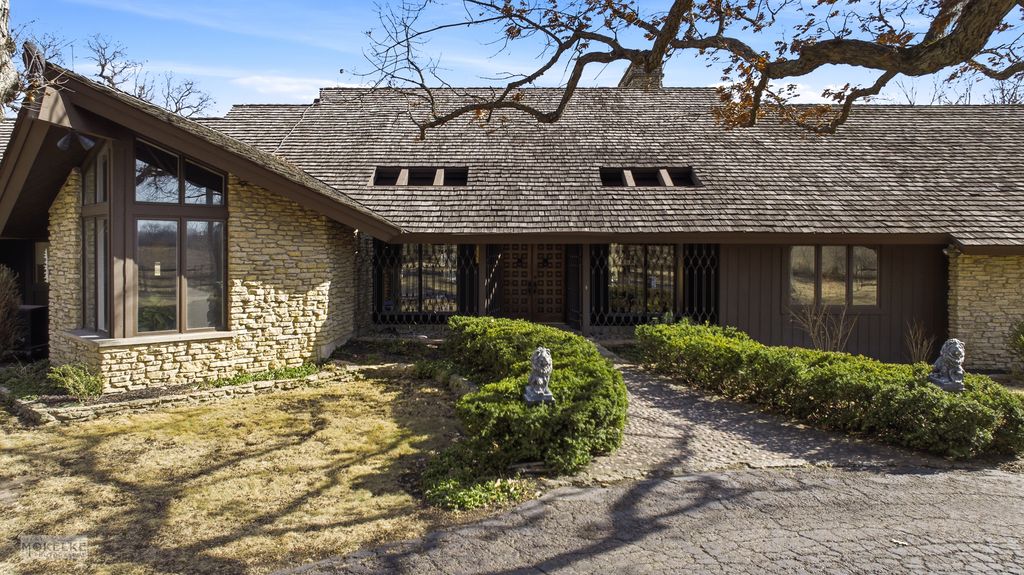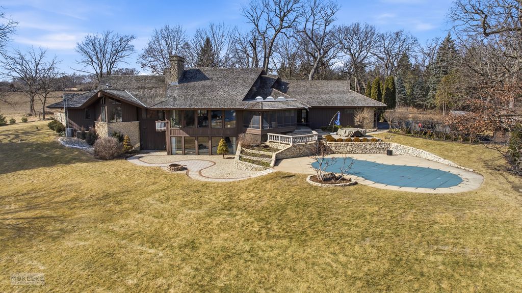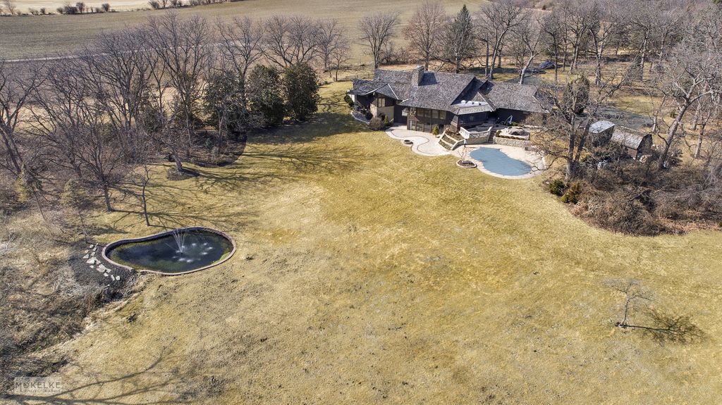 Prepare to be impressed- this Mid Century inspired jaw dropper is nestled at the end of a towering tree lined driveway, overlooking several ponds, and sits on just over 9 acres of your own private paradise. The views are amazing, the style is impressive, and the layout is ideal. With a first floor Master Suite including a spa inspired Bathroom, this home offers all modern day conveniences on the main level, plus it has the added bonus of a stellar Loft highlighted by the 4th fireplace and a finished walkout Basement that makes entertaining a breeze. There is a second Suite that is great for visitors or a related living situation, plus Bedrooms 3 & 4 share a Jack-and-Jill Bathroom with three separate sections. The Kitchen is much larger than it appears in the photos with a massive quartz island, walk-in panty, Butler's Pantry, all high end appliances, and access to the screened-in Porch that makes dining al fresco routine. The warmth of the wood embellished Den makes it a true sanctuary and the oversized, heated 3 car Garage has a fresh coat of paint and new epoxy floor. With over 7,600 square feet of finished living space, an in-ground pool, hot tub, sauna, screened room over looking the pond and paver patio, you won't want to leave home. If you do, the property is only minutes away from the Metra Train station, I-88, shopping, Ream's Meat Market, and multiple restaurants in picturesque downtown Elburn. The photos tell a great story yet you still need to experience the home in person to truly appreciate the character of both the structure and the land that cradles it.