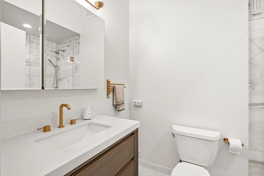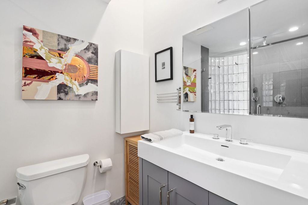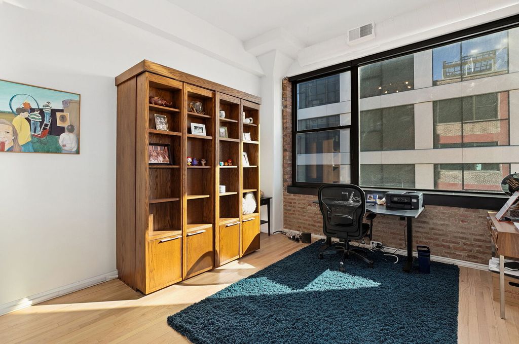 Welcome home to this luxurious, extra-wide 3-bedroom, 3-bathroom corner concrete loft nestled in the heart of the vibrant West Loop! Situated in Westgate Lofts, this quiet 46-unit solid brick boutique building offers an expansive floor plan with soaring 12' ceilings, gorgeous oak hardwood floors, towering concrete columns, and classic exposed brick throughout - perfectly capturing the neighborhood's industrial-chic vibe. A defined foyer entrance leads you into a sun-drenched living area where massive South and East facing windows frame iconic skyline views and flood the home with incredible natural light. This bright atmosphere is elevated by brand new $17,000 custom Hunter Douglas motorized shades throughout. The sleek, modern kitchen is a true showpiece, featuring custom European soft-close cabinetry with pull-out drawers, a double pantry, professional stainless-steel appliances, and a grand waterfall island with seating for four that overlooks the spacious living and dining area. The generous primary suite is a true sanctuary, boasting a newly updated walk-in closet (2025) and a spa-like en-suite bathroom appointed with a floating Antonio Lupi double vanity and floor-to-ceiling stone tile. The versatile split floor plan includes a second bedroom with European pocket doors, a full en-suite bath, and a custom solid wood bookcase that pulls out to a Murphy bed, allowing the space to seamlessly transition from a guest room to a functional workspace. The third bedroom features a built-in desk and yet another beautifully appointed full en-suite bath. Additional highlights include a dedicated in-unit laundry room, dual zone HVAC with smart thermostats, and a heated garage parking space included in the price! Professionally managed building with the innovative Butterfly access system and 24-hour surveillance. Step outside and find yourself surrounded by the very best of Chicago - including the world-class dining of Restaurant Row, Soho House, Mary Bartelme Park, and three major supermarkets. Located within the award-winning Skinner School district and just moments from the Blue Line & both major expressways, this home delivers the epitome of luxury, lifestyle, and location - all in one exceptional West Loop package!