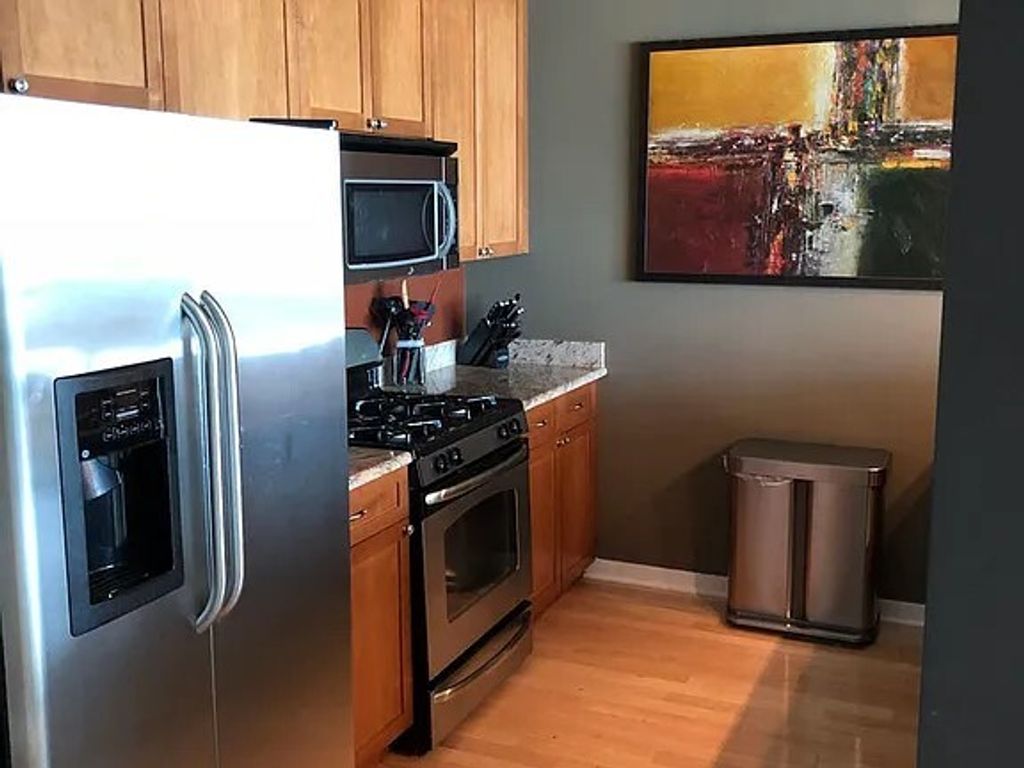 Experience this full amenity destination property in one of the most desirable addresses in River North. This 1 Bedroom/1 Bath condominium includes an assigned indoor parking space next to the entrance. Walking into this property you will appreciate stainless-steel upgraded appliances, granite countertops, breakfast bar, bright living spaces, open floor plan and a stellar and utilitarian $10k value built-in wall shelving unit with a built-in desk in the living room. This unit also features floor to ceiling windows in the living room and bedroom, built-in wireless surround sound speakers, upgraded hardwood floors, open kitchen layout with in-unit washer and dryer. Amenities include a 24-hour door staff, package handling and notification system, an inviting reception area, pool, sundeck, fitness center, bike room, party room, fitness room, and self-serve dry cleaning. Pets are welcome with pet walk right next door to the building. All utilities included in assessments except electric. 1 block away from the brown line subway, bus transportation, Starbucks. Nearby Michigan Avenue and all shops and entertainment, grocery stores, Millenium Park, local hospitals and universities and the central loop. Enjoy an 8-minute bike ride to the lake on weekends. Available June 1st. Parking included ($25K value). Don't miss this value driven property that will not be on the market long at all.