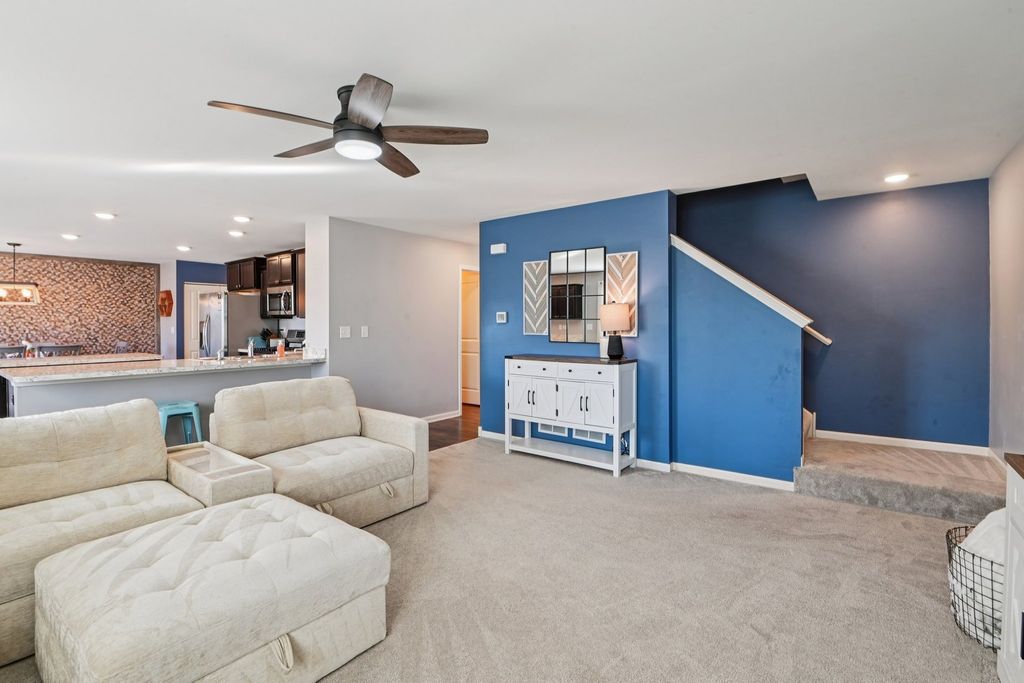 Welcome to this beautifully updated 4-bedroom, 2.5-bathroom home in a prime Shorewood location. The inviting covered front porch sets the tone for a residence that perfectly blends comfort with modern upgrades. Inside, durable wood laminate flooring flows through the formal living room into an expansive, open-concept layout. The heart of the home is a massive eat-in kitchen featuring a center island, stainless steel appliances, and a large pantry, all overlooking the family and dining areas. Practicality meets convenience on the main level with a dedicated mudroom providing access to the 3-car garage, alongside a main floor laundry room and a well-placed half bath. The second level offers a versatile loft area that serves as an ideal second living space. The primary suite is a true retreat, boasting a ceiling fan, a spacious walk-in closet, and a private ensuite bathroom with a double vanity and walk-in shower. Three additional generously sized bedrooms share a full hallway bathroom, which was refinished in 2026. For even more space, the basement was partially finished in 2025 with a room perfect for a home theater or game room, while leaving plenty of unfinished area for storage. Outdoor living is where this property truly shines. The exterior was transformed in 2019 with a widened driveway, professional brickwork, and rock landscaping. The fully fenced backyard is an entertainer's dream, featuring a patio, pergola, and fire pit installed in 2021, as well as a basketball hoop added in 2020. Situated in a vibrant neighborhood, you are just steps away from local parks, the splash pad, scenic walking paths, and all the community events at the Townecenter.