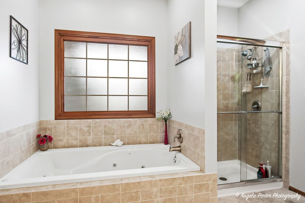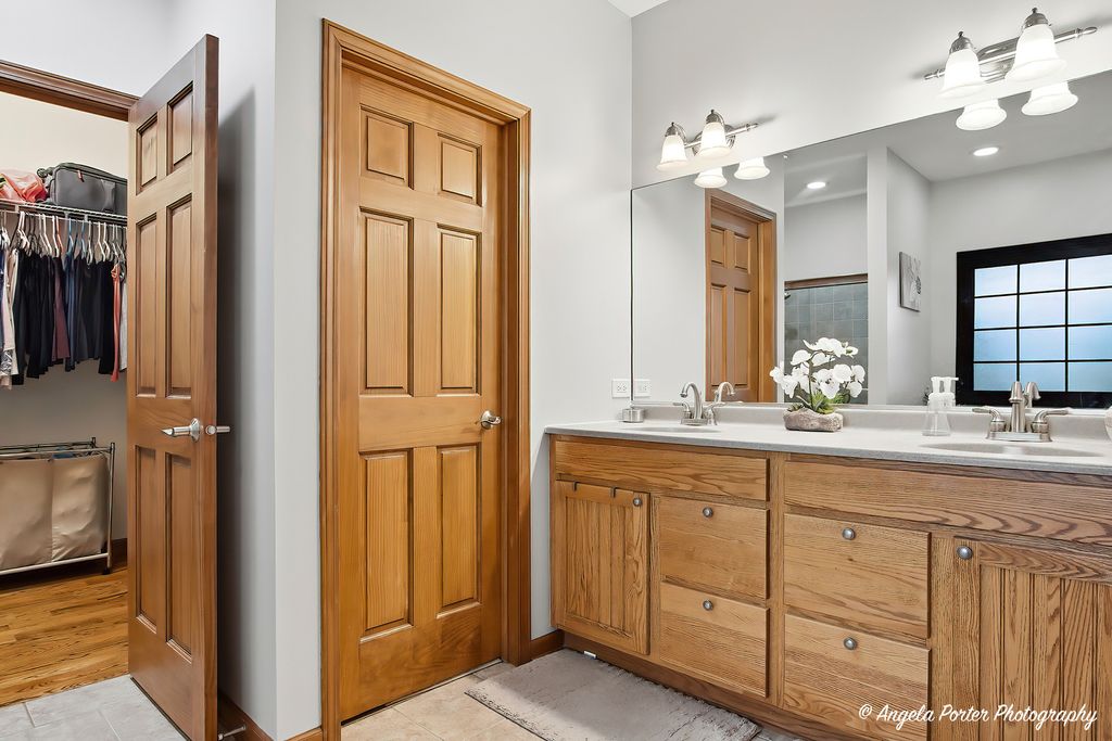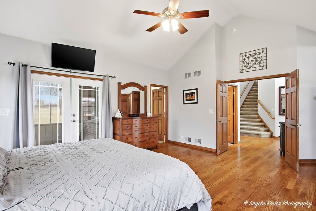 This custom-built Crystal Lake home sits on just over an acre at the end of a quiet cul-de-sac, with the fairways of Prairie Isle Golf Course stretching across the back of the property-a view that makes every morning feel a little more spacious. The home has three bedrooms and three and a half bathrooms across a thoughtfully designed layout. Hardwood floors run some of the first floor, and the open-concept kitchen is the natural center of the home. The cabinetry is handmade in central Wisconsin-a level of craftsmanship simply not found in production builds-and a large island provides generous counter space for cooking and gathering. The kitchen flows directly into the main living areas, keeping the space connected and social. Out front, a wraparound porch sets the character of this property. Out back, a large deck with pergola overlooks the golf course, creating a seamless transition between indoor and outdoor living. The primary suite is genuinely its own world. It includes a sitting area, a large walk-in closet, and an en suite bathroom with dual sinks, a separate shower, and a soaker tub. What makes it truly distinctive is the private screened-in area accessible only from the suite-a quiet outdoor retreat for morning coffee or evening downtime without leaving your personal space. Upstairs, two additional bedrooms share a full bath, and a bonus area offers the flexibility to serve as a home office, reading room, or hobby space. The nine-foot poured basement is unfinished and includes a full bath and generous storage areas-solid bones ready for future expansion or exceptional utility as-is. The three-car side-load garage keeps the curb appeal clean and connects directly to the interior. From the lot position backing the golf course to the handcrafted cabinet work, every detail here reflects a home built with real intention. Dream today!