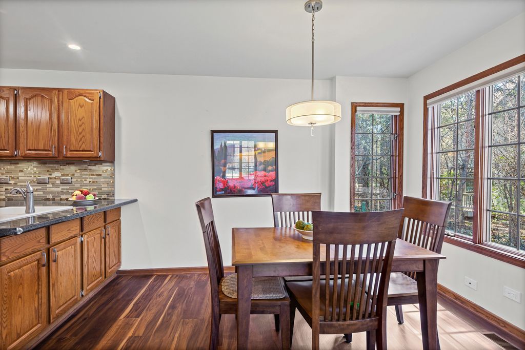 Welcome to this highly desirable Woodlands first-floor ranch townhouse in Darien, IL. Offering true one-level living plus a full unfinished basement. The spacious combination living and dining rooms feature a cozy gas fireplace and abundant natural light, creating a warm and inviting atmosphere. The dining room opens to a spacious deck with a side porch. The perfect place for entertaining, grilling, or relaxing outdoors. The primary suite includes a private bath with double sinks, a walk-in shower, and generous closet space, while the second bedroom is ideal for guests, a home office, or flex space. The second full bath and first-floor laundry make living a breeze. A full unfinished basement provides exceptional flexibility for a home gym, workshop, storage, or future finished living space. Many improvements have been completed over the last ten years, offering peace of mind and move-in-ready convenience. Located near parks, shopping, dining, major highways, and highly rated schools, this Woodlands ranch combines low-maintenance living with space and comfort. Book a showing to see this property!