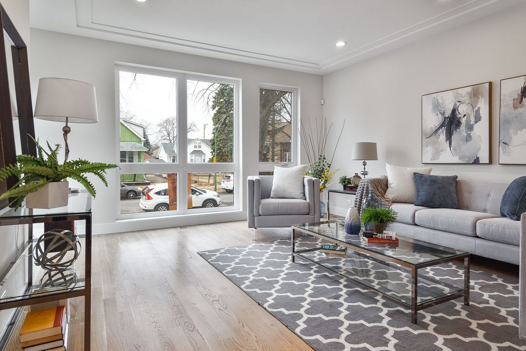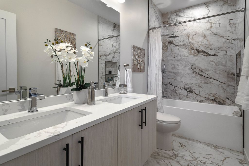 Modern new construction single-family home by top developer on an oversized 30' lot! Sharp facade with brick accents. Extra wide, open concept floor plan. Sun filled main-level features spacious living/dining area with large front windows and hardwood flooring throughout. Adjoining eat-in kitchen with stainless steel Whirlpool appliance package, flat panel cabinetry, quartz counters, island and peninsula with breakfast bar seating, pantry, and patio door to rear deck. Bright and spacious primary bedroom with good storage and private bath featuring a frameless glass shower, vanity with dual sinks, and heated flooring. Two additional bedrooms, full guest bath with tub, and laundry complete the upper-level. Finished lower-level with recreation room featuring wet bar, 4th bedroom, full bath, utilities, and luxury vinyl plank flooring. Nice ceiling heights throughout. Finished closets. On trend design features and tons of natural light! Enclosed backyard with deck and detached two-car garage. Conveniently located near shopping, groceries, restaurants, parks, and more!