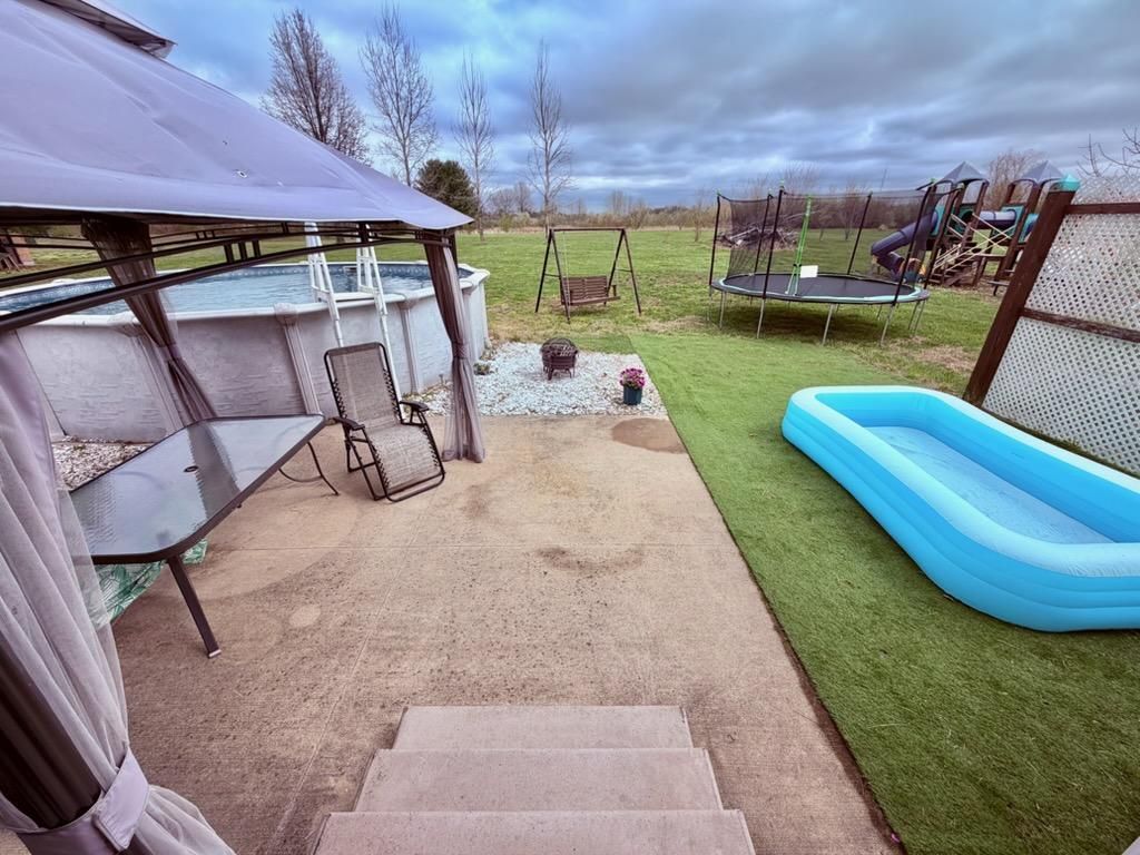 Enjoy country living with modern updates in this beautifully remodeled 3 bed, 2 bath ranch located in the desirable Rome School District. A covered front porch welcomes you into an inviting living room, perfect for relaxing or entertaining. The kitchen was thoughtfully updated with Homestyles cabinets and stainless steel appliances that stay. The family room features a cozy gas fireplace and French doors that open to the backyard, creating seamless indoor-outdoor living. The spacious primary suite includes an updated bathroom and convenient access to the laundry room. The home underwent a complete remodel down to the studs in 2012, including new wiring, plumbing, and drywall-giving peace of mind along with updated finishes. In 2016, a breezeway was added along with an impressive 34x34 partially insulated garage featuring a workshop area, heated half bath, and storm shelter-ideal for projects, storage, or hobby space. Step outside and enjoy everything this 3.5-acre property has to offer, including an above-ground pool, playset, and plenty of room to roam. This move-in ready property offers the perfect blend of comfort, space, and functionality inside and out.