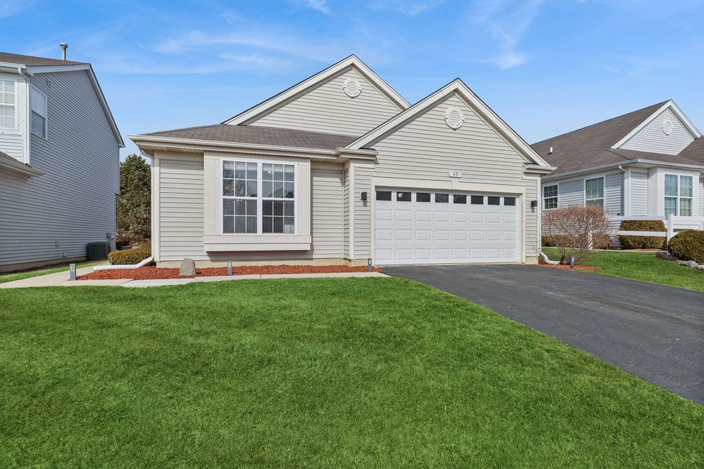 Come see this adorable ranch! Enjoy easy living in a welcoming and low-maintenance community where snow removal and lawn care are taken care of for you. The bedrooms are spacious and offer plenty of closet space, including a roomy walk-in closet in the primary bedroom. Brand-new sliding doors open to a large patio perfect for outdoor relaxing and entertaining. A cozy gas fireplace creates the perfect spot to unwind. The finished garage, along with the overhead door, is fully insulated for added efficiency. Take advantage of the scenic private neighborhood walking path, or head just minutes to downtown Antioch for local shops, dining, and small-town charm. Conveniently located near Metra, Gurnee Mills, and I-94 for an easy commute. Last tax bill did not reflect homestead exemption so with exemption taxes would be lower. HOA does not allow fences or sheds.