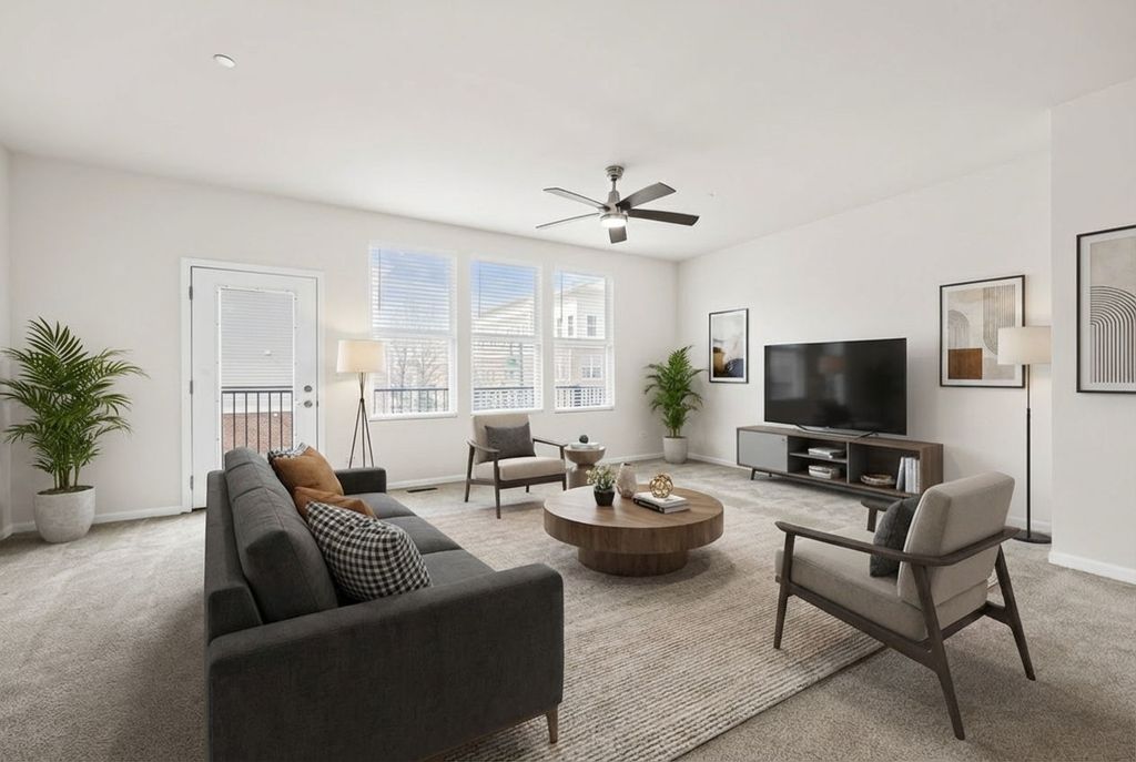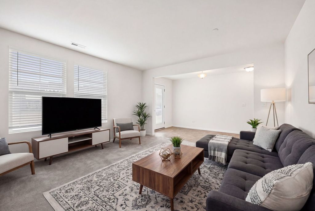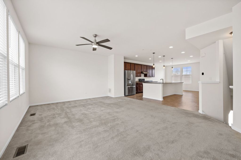 This stunning 3 bedroom, 2.5 bathroom townhouse in Uptown at Seven Bridges offers 2,240 square feet of beautifully designed living space across three thoughtfully planned levels. Open concept main level features a spacious family room with carpeting, ceiling fan, and large windows that access a spectacular 20x5 balcony recently replaced by the HOA in 2025. Kitchen boasts granite countertops, chestnut-colored cabinets, stainless steel refrigerator, black stove with exhaust hood, and a large center island with seating for four, dishwasher, sink, and elegant pendant lighting. Dining area flows seamlessly from the kitchen and includes a bar area added in 2020, perfect for entertaining. Recessed lighting illuminates the entire main level, while a convenient powder room completes this floor. Upper level includes all three bedrooms, including a primary suite with carpeting, large windows, and walk-in closet. Primary en-suite bathroom features a private toilet room, walk-in shower, double sink vanity, and linen closet. Two additional bedrooms share a full hall bathroom with shower/tub combo. Laundry closet on this level adds convenience. Lower level provides entry from the 2-car attached garage or the foyer that opens to a versatile living room with carpeting, perfect as a home office, fitness room, or flex space. Utility room completes this floor. Enjoy effortless living just minutes from popular dining destinations like Jam 'n' Jelly Cafe, Starbucks, and Ike & Oak Brewing, premier golfing at Seven Bridges Golf Club, convenient shopping, and even nearby skiing at Four Lakes. Schedule a showing today!
