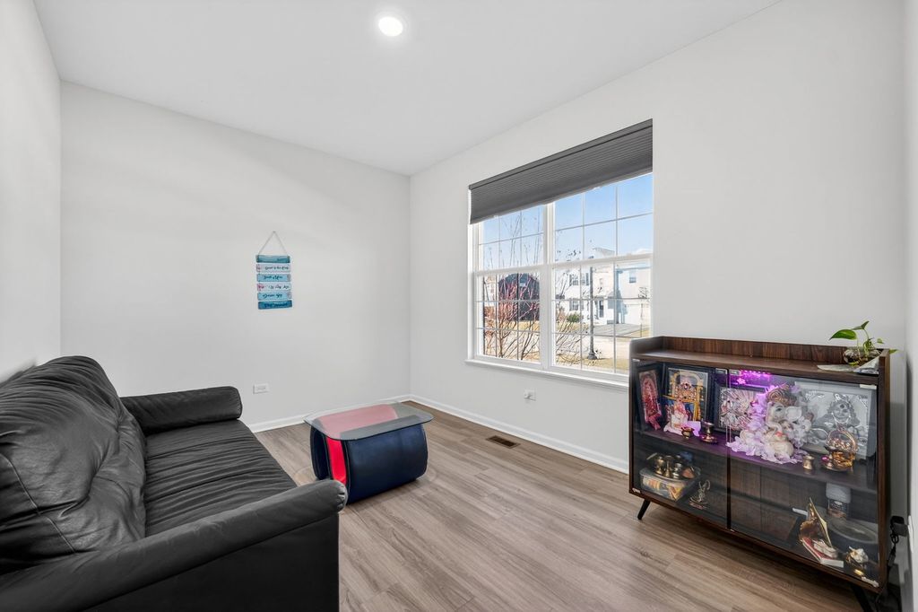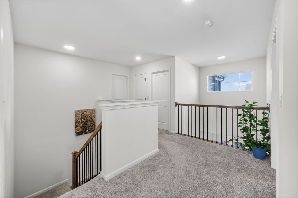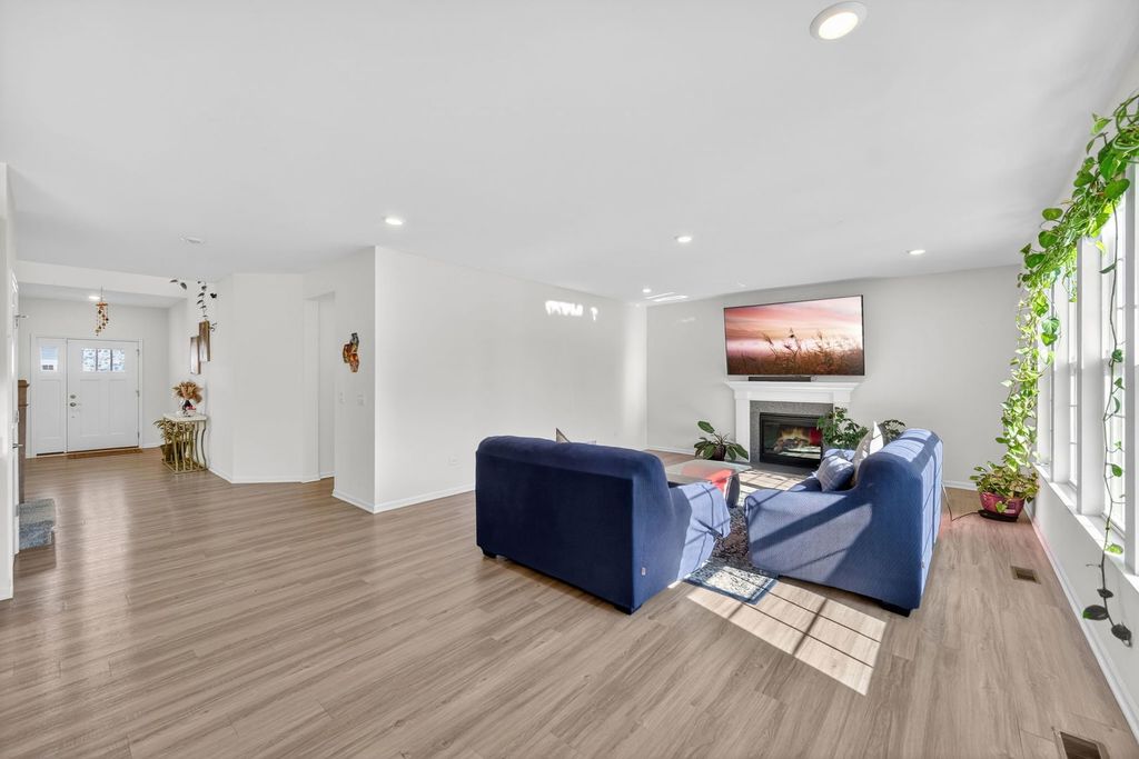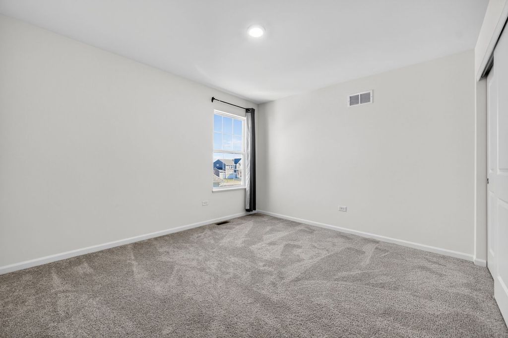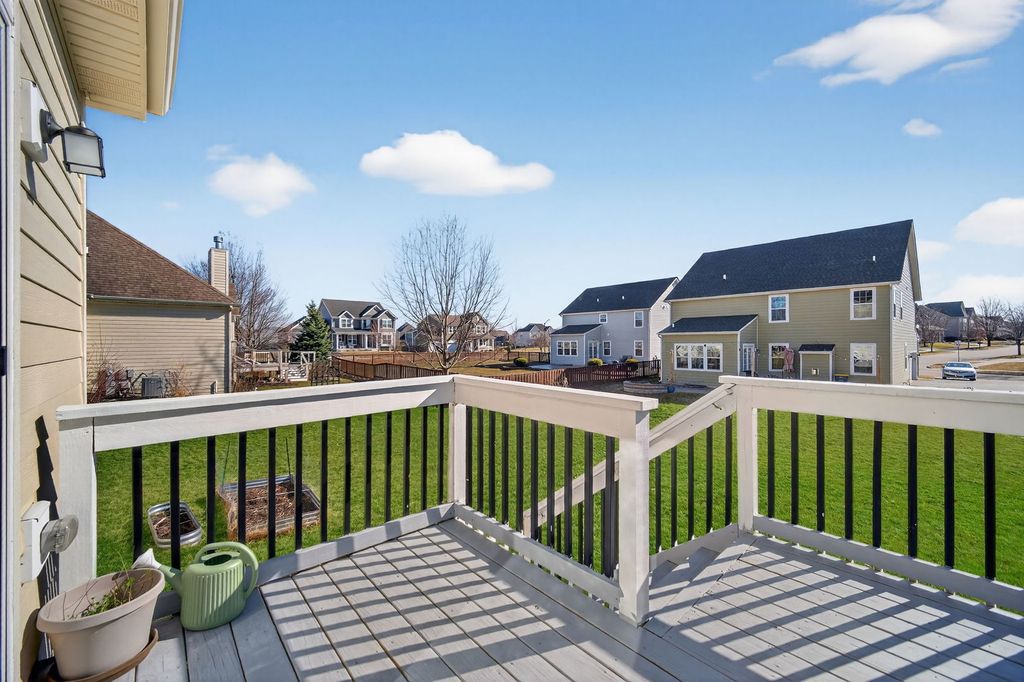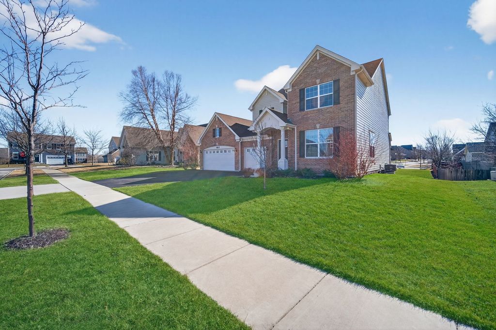 The beautifully designed Bluestone model offers the perfect blend of space, style, and functionality, featuring 4 bedrooms, 2.5 baths, a first-floor study, lookout basement, and a 3-car garage-all enhanced with energy-efficient solar panels. A dramatic two-story foyer welcomes you into the home, leading to a private study overlooking the covered front porch-ideal for working from home. The first-floor living and dining rooms are upgraded with rich hardwood flooring, adding warmth and elegance throughout. The home also features a striking brick elevation, enhancing its curb appeal. The kitchen is truly the heart of the home, showcasing a spacious pantry, elegant Aristokraft cabinetry, GE stainless steel appliances, and an oversized island complete with a sink and barstool seating. The bright breakfast area flows effortlessly into the open-concept family room, highlighted by a cozy fireplace, making it perfect for everyday living and entertaining. Step onto the deck, ideal for outdoor gatherings and relaxation. Upstairs, the luxurious owner's suite features a private bath and an oversized walk-in closet. Three additional generously sized bedrooms are thoughtfully arranged around a full bathroom, along with a convenient second-floor laundry room and linen closet. Additional upgrades include a water softener system, providing enhanced comfort and efficiency throughout the home.