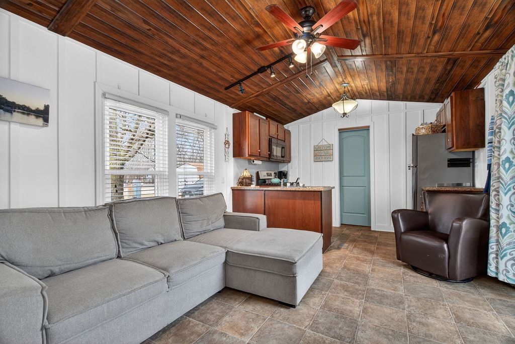 Welcome to your perfect little slice of lake life. This adorable waterfront fully furnished home offers two beds, one bath, and everything you need to start making unforgettable memories. Whether it's mornings with coffee on the large deck overlooking the water or evenings gathered around a crackling campfire under the stars, this home is all about slowing down and soaking it all in. Inside, you'll find a cozy and comfortable layout for easy living. Step outside to the spacious 16x52 deck (2016), ideal for entertaining, grilling, or simply enjoying the peaceful views. The charming enclosed gazebo (2022) is perfect for summer nights, rainy afternoons, or relaxing with a good book while listening to the sounds of the lake. From fishing off the dock to sunset boat rides and laughter around the fire pit, this is where lake life memories are made. Whether you're looking for a weekend getaway or a year-round escape, this waterfront gem is ready to welcome you home. Make long lasting memories in this amazing community where you can enjoy incredible fishing (spring fed stocked lakes), boating, swimming, kayaking, Canoeing, hiking in this gated community w/club house, pool, beach, volleyball, basketball, miles of nature trails & much more. Updates include: HWH (2024), Fridge & Stove (2022), Windows (2021), Roof (2016), Siding (2016). Please note: Only depending on the offer the Boats, Golf Cart & Kayaks will be included. Make this perfect escape your weekend retreat or year-round residence! Less than an hour from Chicago & just minutes off I-55. Ass. dues are on a Tier basis & can be found under additional information or on the Shadow Lakes website. This is a gated community you will need to make arrangements prior to showing.