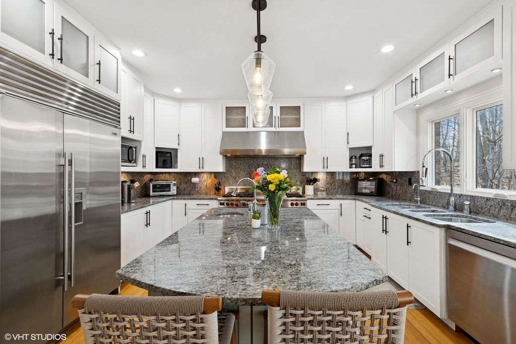 Your Private Luxury Estate Awaits in Abbey Woods Welcome to luxury living at its finest in the highly sought-after Abbey Woods of Frankfort. This exquisite brick walkout ranch has been meticulously maintained and thoughtfully updated, offering an exceptional blend of elegance, comfort, and privacy. Situated on nearly half an acre with mature trees and lush landscaping, this home provides a peaceful retreat while remaining close to everything Frankfort has to offer. Featuring 6 spacious bedrooms, 4.5 bathrooms, and over 5,800 square feet of beautifully finished living space, this impressive residence is designed to both entertain and live comfortably. A brand-new roof offers peace of mind, while the open-concept layout and soaring 12-foot ceilings create a bright and inviting atmosphere throughout. Rich hardwood, slate, and bamboo flooring complement the home's refined design, while the freshly painted interior enhances its modern, move-in-ready appeal. Radiant heated flooring in the basement adds an additional layer of warmth and comfort. At the heart of the home is the gourmet kitchen, featuring granite countertops, high-end appliances, and custom cabinetry-perfect for everyday living or hosting memorable gatherings. The four-seasons room offers a relaxing escape with beautiful backyard views and a private sauna, creating the perfect space to unwind year-round. The fully finished walkout basement is truly an entertainer's dream, complete with a second kitchen-ideal for related living, extended guest stays, or hosting large gatherings. With a spacious recreation area and direct access to the backyard, this level offers incredible flexibility. Step outside to your own private outdoor retreat. The fenced backyard features a large deck and in-ground pool, creating the perfect setting for summer entertaining or peaceful evenings surrounded by mature trees and natural privacy. This one-of-a-kind estate is a rare opportunity in the heart of Frankfort. With its exceptional space, thoughtful updates, and premier location, this home offers a truly elevated living experience.