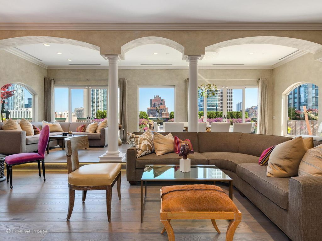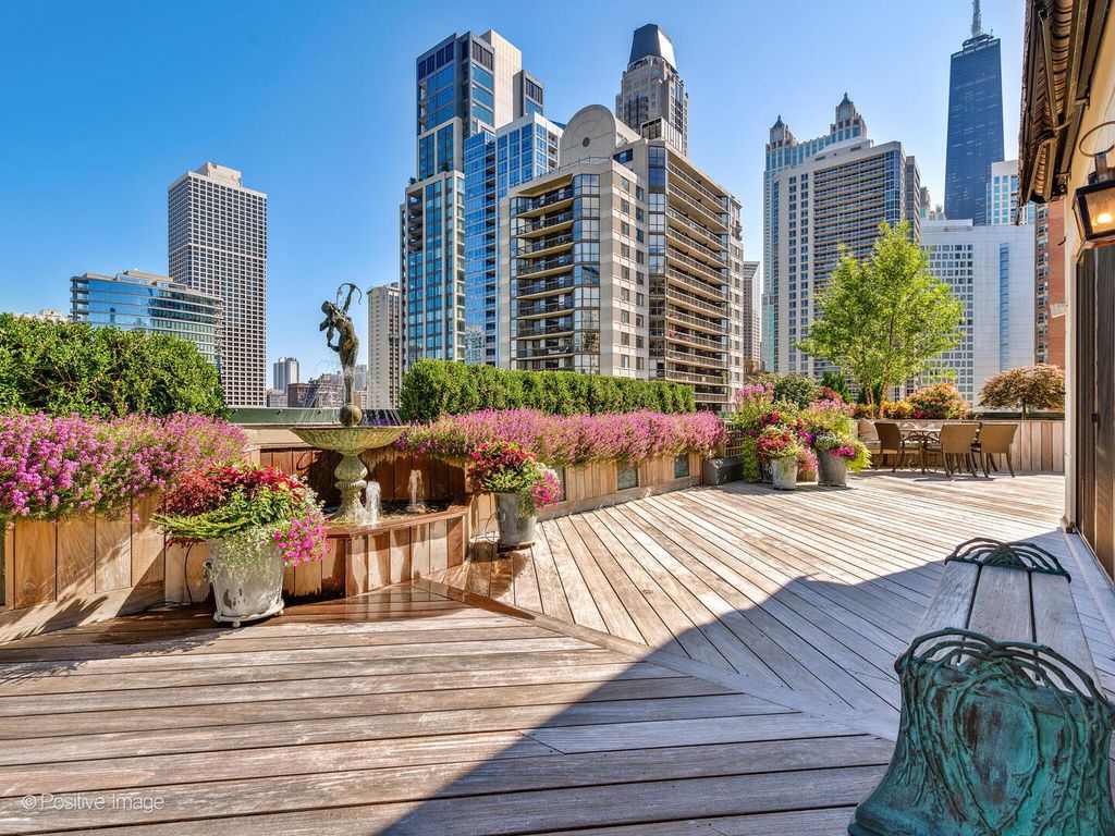 Stunning rarely available custom duplex penthouse with over 6000 sq ft of immaculate living space. One of Chicago's most unique homes with multiple outdoor spaces including a 3500 sq ft wraparound remodeled outdoor oasis with city and park views. Fall in love with the elegance and charm of this wonderful open concept home with beautiful finishes and details throughout. Sophisticated features from a spacious living room with dramatic high ceilings, formal dining room, expansive chefs kitchen that boast custom cabinetry, granite counters, large island, dumbwaiter to top level entertaining area, stainless steel appliances and a walk-in pantry. Three large bedrooms including a spacious primary suite with a walk-in closet and spa-like bathroom. Two additional large office spaces or Den for all your work and home needs. The second level family room and wet bar offers plenty of possibilities in the large open space; perfect for entertaining, lounging or working out. This home is perfectly situated in the Gold Coast. The Gold Coast is the best neighborhood for walking to everything Chicago has to offer. Two heated parking spaces with large storage rooms included in price. Additional heated parking available . See floor plan under Additional Information.