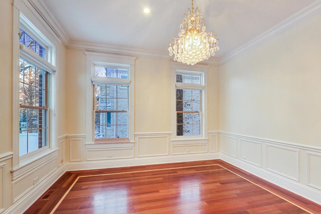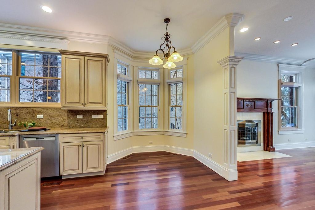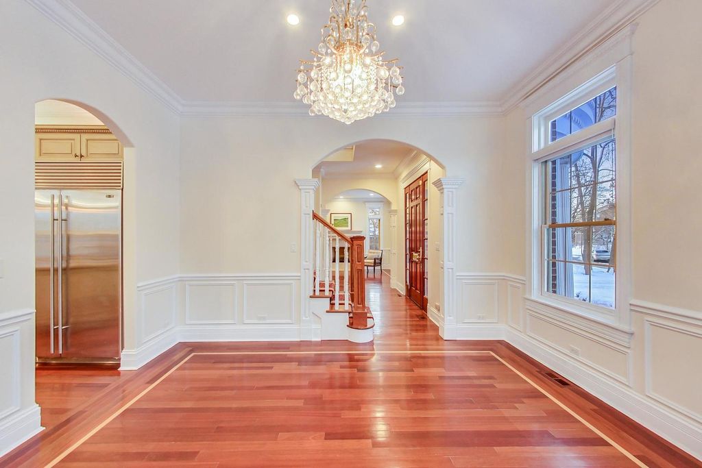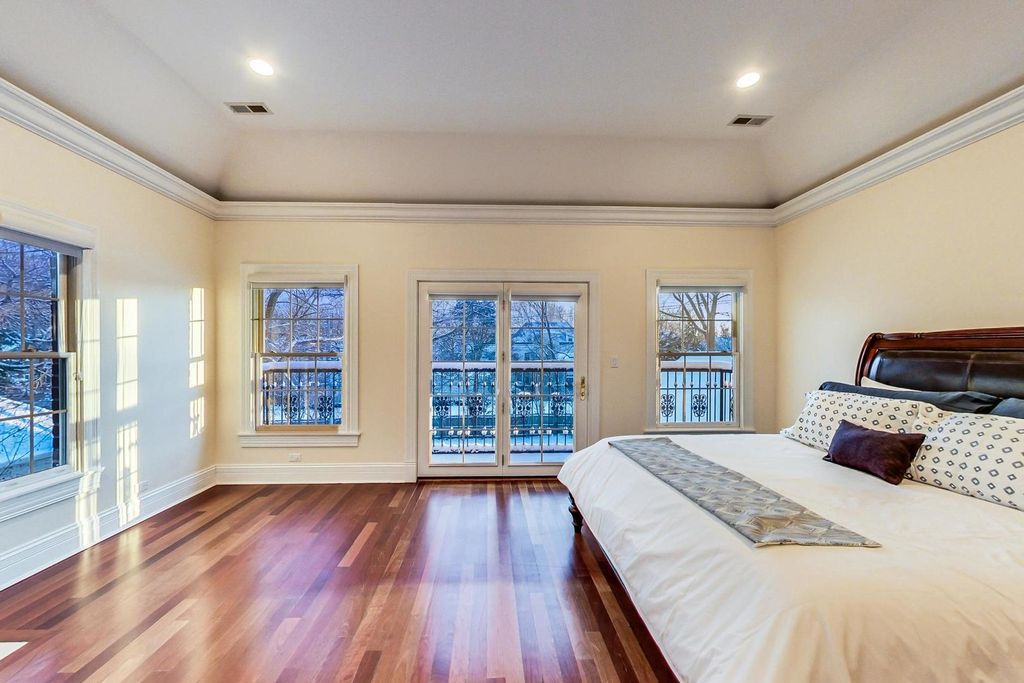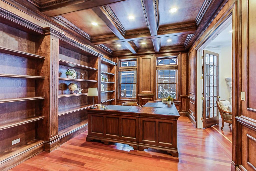 Perfectly positioned in the heart of downtown Glencoe, this all-brick newer construction residence offers a refined blend of timeless craftsmanship and elevated modern living, just moments from boutique shopping, dining, parks, top-rated schools, and the Metra. A gracious foyer introduces rich Brazilian cherry flooring that flows seamlessly throughout the main living spaces, setting a warm, sophisticated tone. The formal living room is anchored by a striking limestone fireplace and framed by stately French doors that open to a distinguished executive office, complete with custom built-ins, intricate wood paneling, and coffered ceilings. Designed for both intimate gatherings and grand entertaining, the dining room showcases exquisite inlaid hardwood flooring and elegant wainscoting, ideally situated just off the kitchen. The chef's kitchen is a masterclass in functionality and style, featuring granite countertops, abundant custom cabinetry, a planning desk, and a center island with prep sink, all complemented by premium appliances including a Sub-Zero refrigerator, Bosch dishwasher, and Viking six-burner range with double ovens and hood. The adjoining breakfast room and family room create a seamless living experience, both overlooking the beautifully landscaped rear grounds and highlighted by a second gas fireplace with stone surround and rich wood mantle. A spacious mudroom and laundry area with LG washer and dryer, ample storage, and thoughtful organization complete the main level. Upstairs, the primary suite is a true sanctuary, featuring a tray ceiling, private fireplace, French doors opening to a serene balcony, an expansive walk-in closet with custom organizers, and a spa-inspired bath with skylight, heated floors, steam shower with body sprays, separate water closet, and a luxurious jetted tub. Three additional bedrooms, each with en suite baths and walk-in closets, offer exceptional comfort and privacy. The fully finished lower level is designed for ultimate versatility and entertainment, offering a large recreation room with brick fireplace, a full wet bar with refrigerator and dishwasher, a built-in workstation, and two additional en suite bedrooms ideal for guests, fitness, media, or creative spaces, along with abundant storage. Additional highlights include a three-car garage with Tesla charger, brand new carpeting, central vacuum, sump pump with battery backup, dual water heaters, Thermazone electronic air cleaner, Toto fixtures, intricate crown molding, and an inviting outdoor patio with Unilock pavers-creating a turnkey residence that effortlessly combines luxury, comfort, and an unmatched in-town lifestyle.