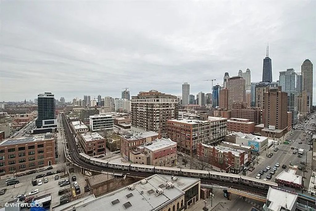 Experience sophisticated city living in this beautifully upgraded contemporary condo, designed for both comfort and style. Rich wide-plank hardwood floors flow throughout the home, complemented by designer light fixtures, custom-organized closets, and thoughtfully selected finishes that elevate every space. Walls of floor-to-ceiling windows frame sparkling skyline views by day and breathtaking sunsets by night, best enjoyed from your expansive private balcony just off the living area - the perfect setting for morning coffee or evening unwinding. The open-concept kitchen is ideal for both everyday living and entertaining, featuring 42" cabinetry, granite countertops, a full backsplash, stainless steel appliances, and a generous breakfast bar that seamlessly connects to the living and dining areas. The spacious bath offers a relaxing soaking tub, while the in-unit front-loading washer and dryer add everyday convenience. This full-amenity building delivers true luxury living with 24/7 door staff, an outdoor pool and sundeck, party room, business center, bike storage, and on-site dry cleaners. Ideally located near the Brown Line, expressway access, and surrounded by shopping, dining, and nightlife - everything you love about city living is right outside your door. Two storage lockers and heated garage parking are included, completing this exceptional offering.