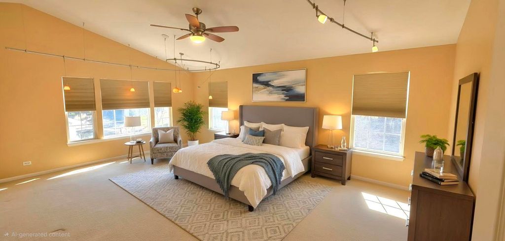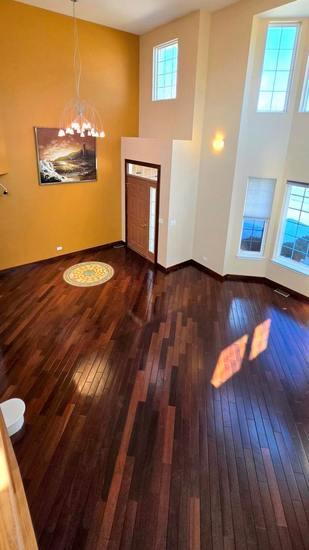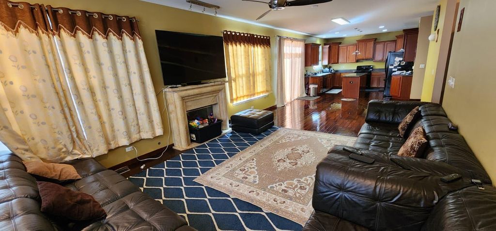 Welcome to the largest home in the subdivision-a bright, spacious 6BR/3.5BA residence designed for modern living. Step into a dramatic 2-story living room filled with natural light and accented by rich Brazilian walnut hardwood floors. The gourmet kitchen is a true standout, featuring beautiful quartz countertops, a large quartz island, 42" maple cabinets, a generous eating area, deep pantry, and direct access to a new cedar deck with soft low-voltage lighting cooking, entertaining, and everyday family life. A flexible first-floor bedroom/office, convenient main-floor laundry, and stylish half bath add comfort and versatility. Upstairs, the primary suite with a separate dressing room (optional 5th BR), large walk-in closet, and private spa bath with soaking tub and dual sinks. Two additional bedrooms and another full bath complete the level. The full finished English basement expands your lifestyle with bamboo steps, an open layout media, gaming, hobbies, or workouts, plus a 3rd full bath. A built-in 7-channel surround-sound setup makes movie nights unforgettable. Major upgrades include a whole-house generator, fast EV charger, 300-amp electrical service, CATV wiring, whole-house battery backup, zoned HVAC, and a 2014 roof. Located near Metra for easy commuting. This home is space, comfort, luxury finishes, and modern amenities-all in one exceptional package.