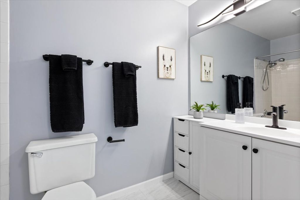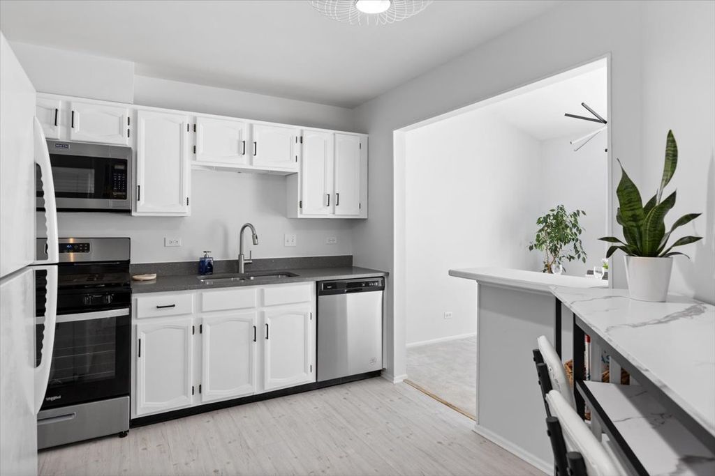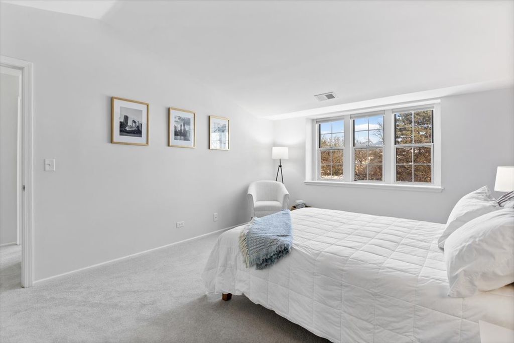 Meticulously updated 2 bed/2 bath top floor condo in the resort like community of Arlington Club! Step into inspired living with an open & inviting floor plan, excellent for entertaining. Living room with fireplace & soaring cathedral ceilings filling up the unit with natural sunlight. Formal dining room. Upgraded chef's kitchen with new Quartz countertops, new stove, dishwasher & microwave, restored cabinetry, walk in pantry with shelving solutions. Upgraded baths with new vanities & flooring. Two generously sized bedrooms, including palatial primary suite complete with two closets & en suite bathroom. Laundry room with additional storage. New carpeting & designer fixtures throughout. Entire unit freshly painted. Double set of sliding doors leads to new balcony with upgraded composite deck for easy maintenance. Idyllic setting, situated among manicured grounds. Attached garage, with new door, located closest to the unit - also providing additional storage. Take a swim in either of the two community pools, entertain guests in the full amenity clubhouse, enjoy the beautiful 18 acre park & 1.5 miles of walking paths throughout the community. Plenty of guest parking. Perfectly located near restaurants, retail & quick access to major roads. Welcome home!