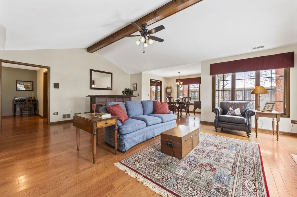 Effortless Urban Living in the Heart of Mount Prospect. Experience the perfect blend of suburban comfort and city-style convenience in this sprawling 3 bedroom, 2,438 sq. ft. luxury Townhome. This unique, single-level gem features rich hardwood floors and an expansive vaulted ceiling and a charming fireplace. The large kitchen boasts abundant cabinets, counter space and a dedicated beverage cooler, perfect for prepping a feast or just a night with friends. Retreat to the private primary suite, a true sanctuary featuring a tub and separate shower and two walk-in closets. Convenient laundry room off the kitchen. With a 2-car attached garage and a location just steps from the Metra, many restaurants, library, numerous coffee shops and vibrant summer festivals, you aren't just buying a home-you're upgrading your lifestyle.
