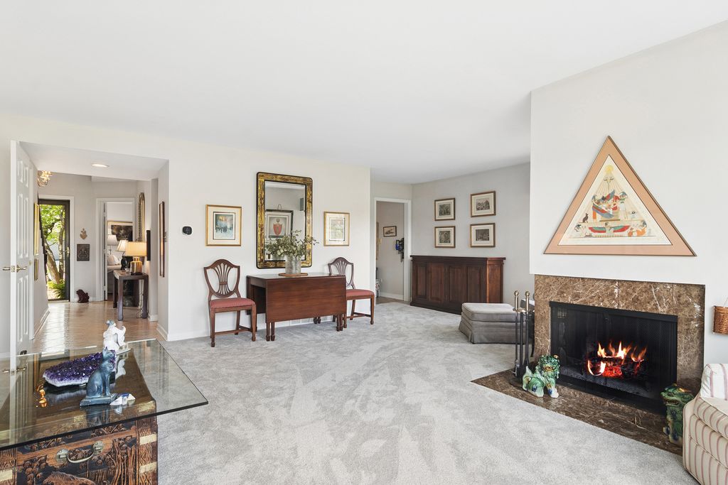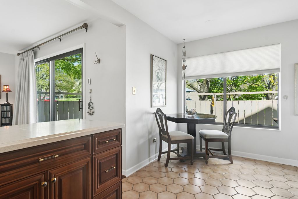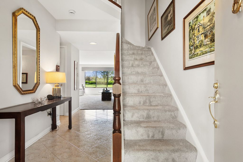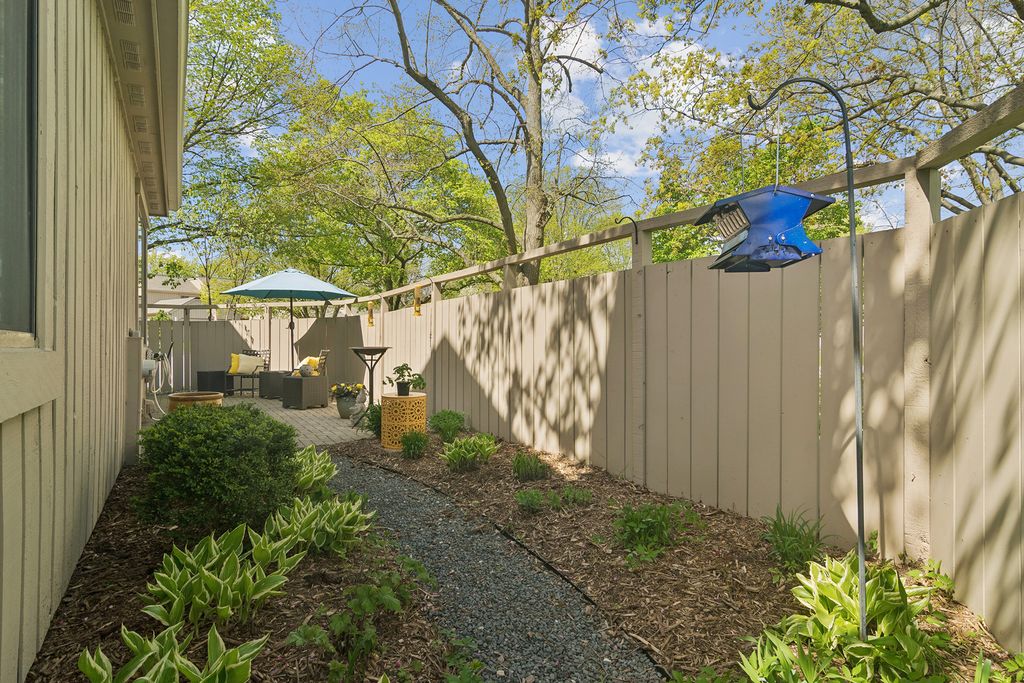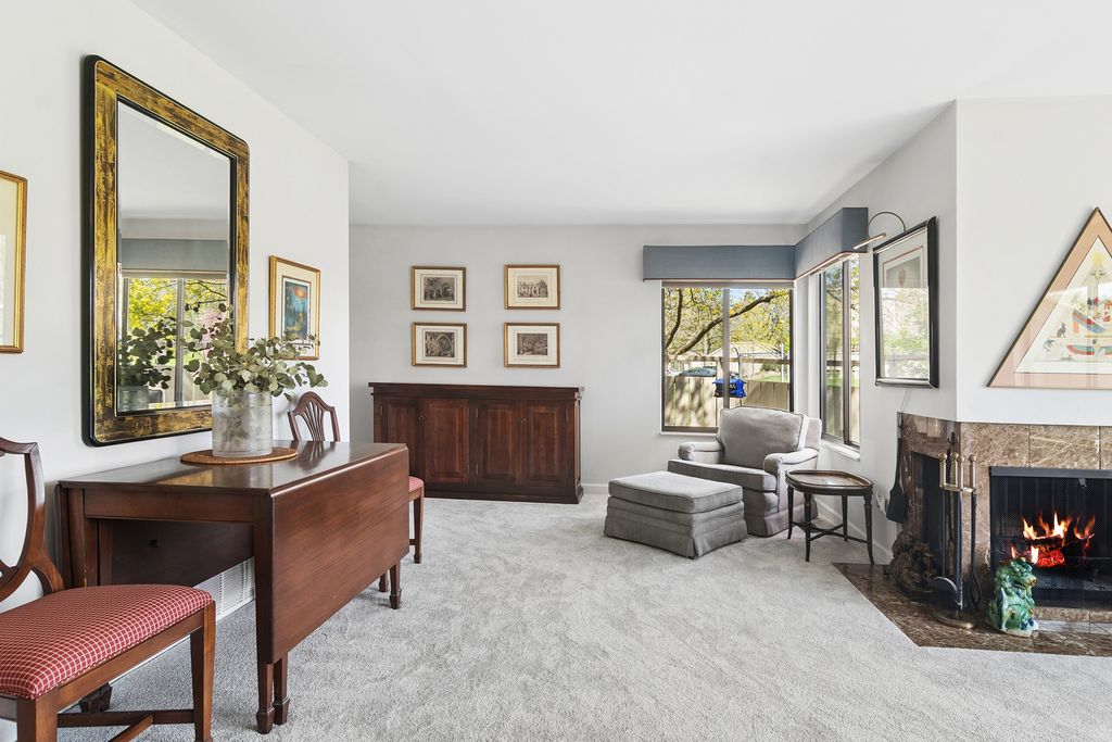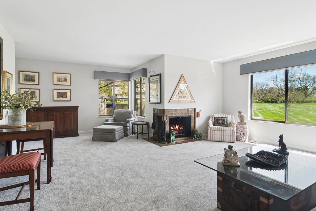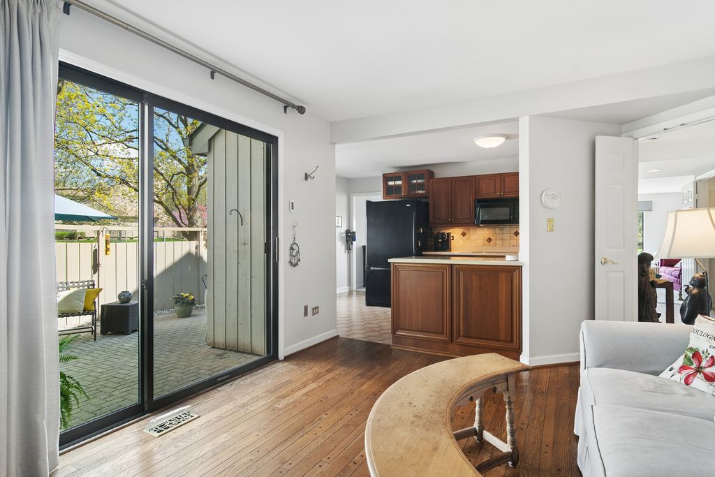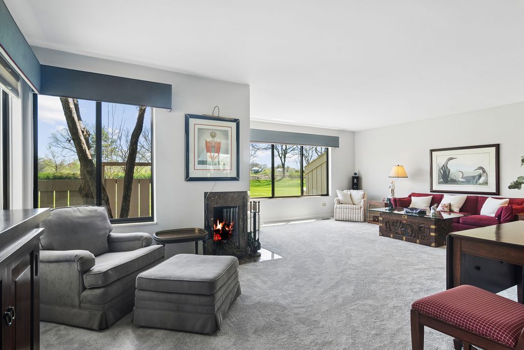 Bright, sun-filled end-unit townhouse that feels like a single-family home, backing to open space and featuring a spacious private paver courtyard. Enjoy expansive views of the lush grounds from the large living room with fireplace and the adjacent formal dining room. The beautifully updated kitchen showcases Corian counters, rich cherry cabinetry with abundant storage, and upgraded appliances built for gourmet cooking. A cozy den opens directly to the courtyard-perfect for morning coffee or listening to the birds. Upstairs offers a generous primary suite, a second bedroom, and a full bath. The English basement includes a large family room, a second fireplace, and another full bath, providing flexible living space. Impeccably maintained and recently refreshed with new paint and brand-new carpet. Conveniently located near the main gate and clubhouse for easy access-no long drives through the neighborhood. Live every day like a vacation in this amenity-rich, lifestyle-focused community with a private 100-acre lake and sandy beach, walking trails, resident kayaks and sailboats, indoor and outdoor pools, pickleball and tennis courts, a newly renovated clubhouse, fitness center, year-round social events, and 24-hour staffed gate security. Rare opportunity for a ranch-style home in this location, condition, and with a spacious garage and driveway-don't miss your chance to experience the Lake Barrington Shores lifestyle.