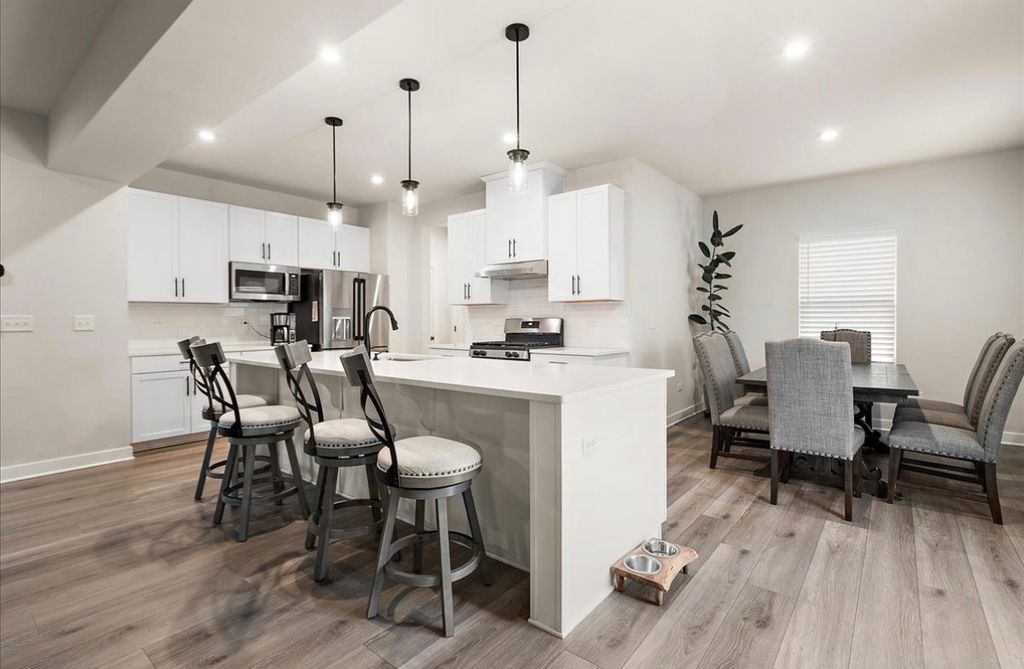 Built in 2023 and better than new, this upgraded Sugar Grove home offers modern style and flexible living near top-rated schools, parks, I-88, shopping, and dining. The main level boasts an open-concept layout that seamlessly connects the living room, kitchen, dining area, and great room, all enhanced with luxury vinyl-waterproof flooring. The kitchen includes a French-door pantry, oversized island, tile backsplash, and granite countertops, plus a convenient half bath. Upstairs, the spacious primary suite offers a large walk-in closet and spa-like bath with dual sinks and a walk-in shower. Two additional bedrooms and a second-floor loft provide flexible space and can easily be transformed into an additional bedroom. The finished basement is an entertainer's dream, featuring upgraded doors, a cozy fireplace, a bar area with living space, a full bath, bedroom, and bonus room. A 3-car garage, large backyard with concrete patio, and new PVC fence (2024) complete this move-in-ready home with 4 bedrooms, office space in the basement and 3.1 baths.