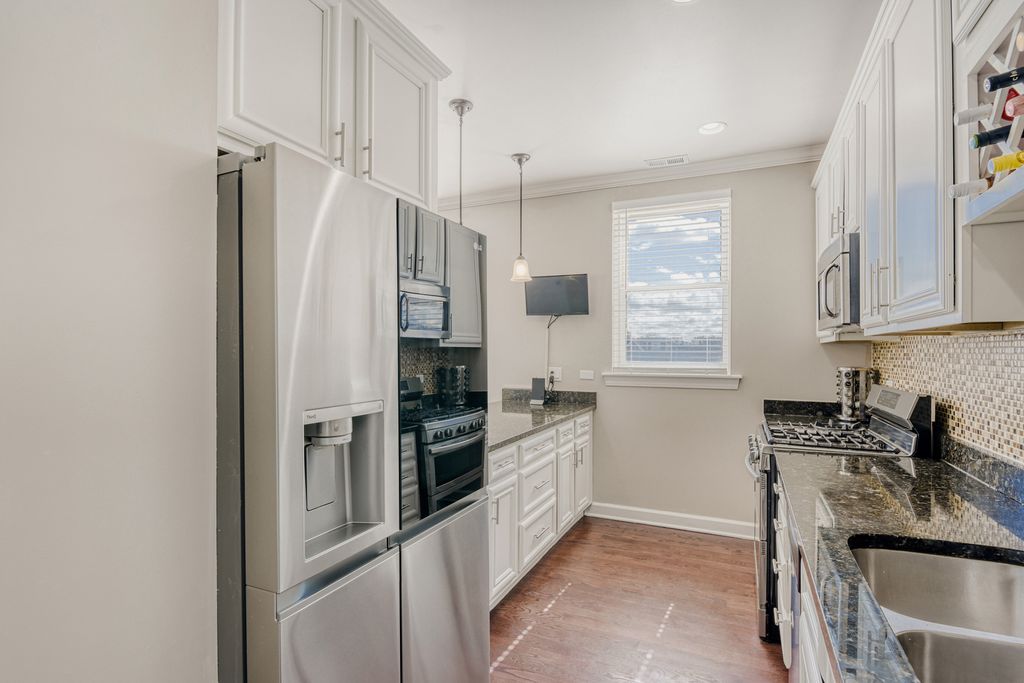 Live your best life overlooking the tree-lined boulevard in this sun drenched 3 bedroom, 2 bath penthouse condo in North Kenwood/Bronzeville. Standing outside you can sense the grandeur with the stone facade and soaring pillars. As you enter the building you will see its well maintained hallways and when you enter the unit you will be greeted with a burst of light from unobstructed south and east facing windows. You will love the open concept white kitchen/dining/living space with space for a home office or day bed. The spacious kitchen with granite counters and stainless appliances has fantastic counter and storage space for all your cooking needs. The living room has a perfectly placed fireplace, huge ceiling fan and a mount for your flat screen TV. Hardwood floors in all living areas. The primary bedroom has ample space for a king size bed and a couch and a dresser and is connected to its own bath with double sinks, and separate tub and shower. 2 more good-sized bedrooms make for great alternatives for a home office or shared living space or even a workshop/sewing room. Spacious west facing balcony, in unit laundry and assigned gated parking complete the package. Building had new roof in 2021. Take long walks on the tree-lined boulevard up to Oakwood Blvd. and down to 47th. Nice walk to the football field and track at Mandrake Park, and 31st street beach/harbor, and neighborhood favorites: Bronzeville Winery, Nitro Nostalgia ice cream and Norman's Bistro. One block to Cottage Grove and the CTA bus downtown.