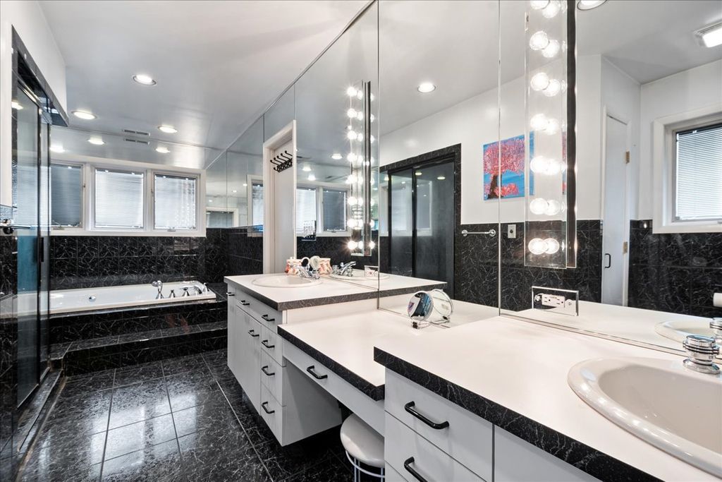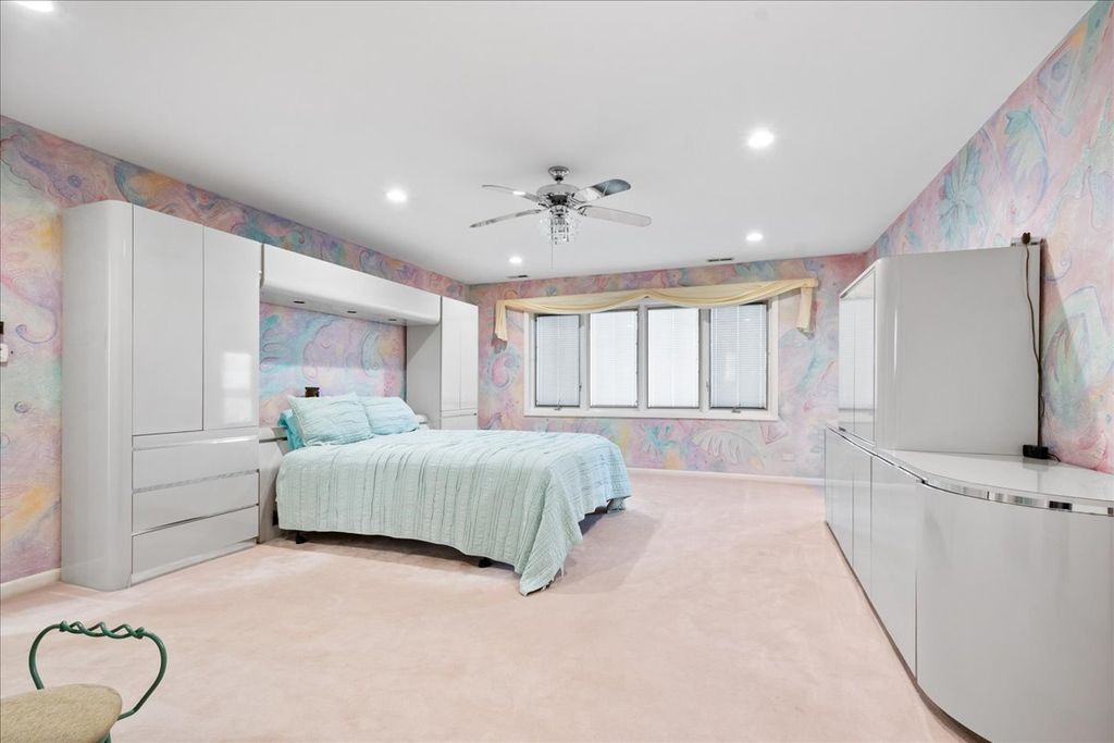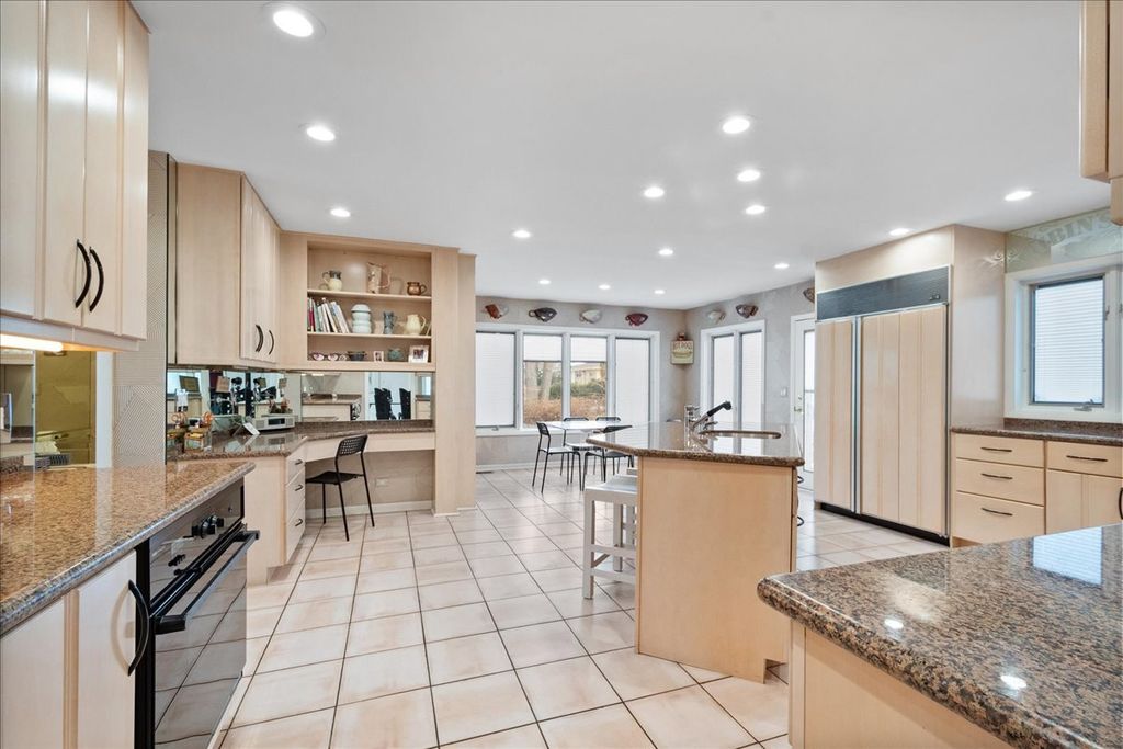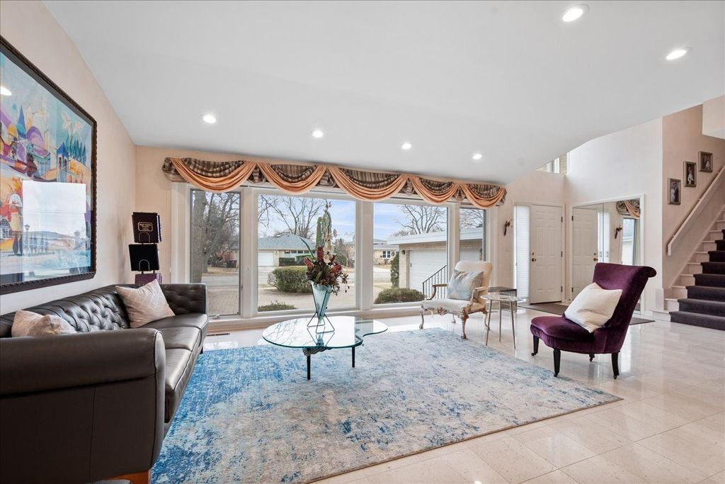 Welcome to this stunning Timber Ridge Home home offering exceptional space, elegance and functionality throughout. A dramatic two-story entry sets the tone, leading into a breathtaking living room with soaring vaulted ceilings, floor to ceiling windows, and beautiful marble flooring that continues seamlessly into the formal dining room. The dining room is designed for both entertaining and everyday living, featuring a custom built-in-storage cabinet, sleek glass shelving, and french doors that open to a spacious deck-perfect for indoor-outdoor gatherings. The expansive chef's kitchen is truly the heart of the home. It boasts a large center island, granite countertops, top of the line appliances, 2 ovens, 2 dishwashers and a walk-in-pantry. A bright eat-in-area offers additional space for casual dining, with direct access to the deck for effortless entertaining. The upper levels features 5 spacious bedrooms including a luxurious primary suite with its own private bathroom and deck, creating a true retreat. One of the secondary bedrooms also features its own private en-suite bathroom. On the ground level ,you'll find a versatile office or maids room , ideal for working from home or guest accommodations. The inviting family room with a cozy fireplace provides the perfect setting for relaxation. the finished sub-basement expands the living space even further with a large recreation room and a dedicated exercise room-ideal for both leisure and fitness. This exceptional home combines elegant living spaces, and thoughtful design in a highly Timber Ridge location!