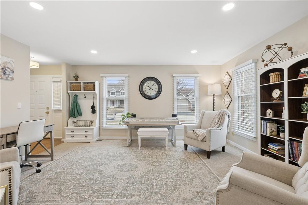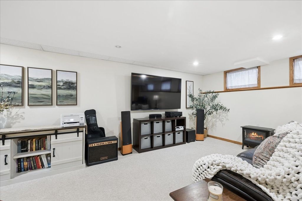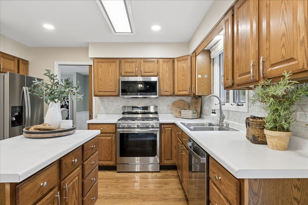 Location! Terrific quiet In Town location adjacent to beautiful Veterans Acres Park near Prairie Ridge HS and only a few blocks to Town & Train is the setting for this spacious 4 Bed 2Story with great finished english daylight basement overlooking a huge backyard! Covered full Front Porch opens to Hardwood Floors in the welcoming foyer. Large traditional flex spaces offer options, a handsome brick fireplace is the focal point in the open GreatRoom style Island Kitchen/Family Dining/Family Room. Pretty backyard views from the Kitchen where Original Oak cabinets are highlighted by brand NEW Stainless Appliances, a double pantry and garden sliders to a great Party Deck with hot tub! Main floor Laundry MudRm offers convenience & space. Hardwood Staircase - 4 spacious bedrooms, updated trim and doors, Generous Primary Retreat with great wardrobe wall closet, private bath & Balcony, 3 family bedrooms share the upper hall bath. Large garage, good driveway, terrific basement shop & crawl storage spaces. Truly clean & Move-In Ready.