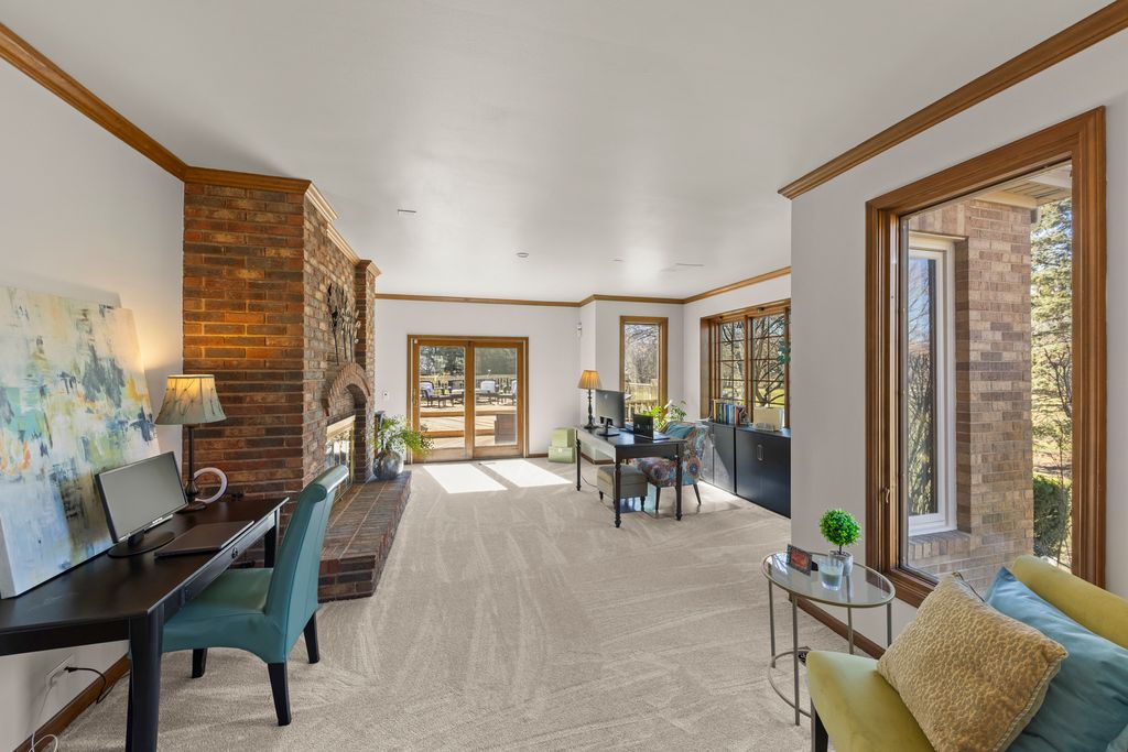 Located in the prestigious Woods of Cantigny, this exceptional brick estate sits in one of the area's most distinctive residential neighborhoods. Surrounded by protected forest preserves, the community is known for its mature trees, expansive homesites, and architectural individuality, with each residence situated on a minimum three quarter acre parcel. Spanning nearly 4,000 square feet, the home showcases rich walnut hardwood floors, intricate millwork, and striking wood beam accents throughout. A grand two story foyer welcomes guests, while large windows fill the home with natural light. The thoughtfully designed main level blends elegance and functionality with a designated office, formal dining room, and a functional butler pantry connecting the kitchen and dining spaces. A dual sided fireplace anchors the primary living areas, creating a warm and inviting atmosphere. The finished basement with wet bar creates an inviting space for entertaining and gatherings. A dedicated sound insulated media room on the second level offers flexible living space that can easily function as a fourth bedroom, home theater, or private retreat. Additional highlights include a three car garage and separate yard storage shed. Meticulously maintained, the home features numerous updates including fresh interior paint, updated lighting and electrical outlets, newer appliances, HVAC replaced in 2023, exterior painted and windows repaired or replaced in 2025, roof less than 10 years old, a leaf guard gutter system, and radon mitigation system. Conveniently located with easy access to major expressways and Northwestern Medicine Central DuPage Hospital, offering the perfect balance of privacy, craftsmanship, and convenience.