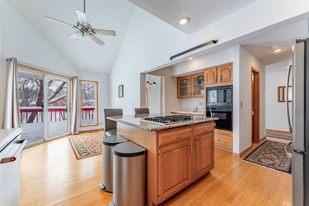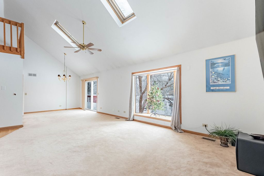 Welcome to this beautiful & Spacious lakefront home in Lake in the Hills! Enjoy a bright, open layout with spacious living areas and abundant natural light throughout. This custom contemporary home offers a desirable first-floor primary suite, new A/C and water heater, Andersen windows, doors, and skylights, masonry fireplaces, water softener, and humidifier. Situated on a tranquil lake lot, the property offers the perfect blend of convenience and lakeside living-close to shopping, dining, and entertainment on Randall Road, yet it feels like a private nature retreat. Enjoy peaceful views and wildlife including birds, deer, beavers, ducks, geese, and heron. Perfect for fishing, swimming, and boating right from your backyard. The walkout lower level includes a family room, additional bedroom, bath, kitchen, and laundry area-ideal for guests or multi-generational living.