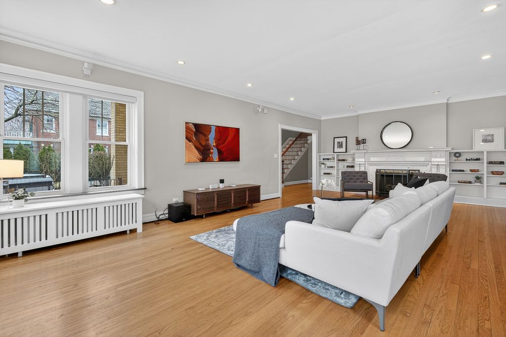 OFFER DEADLINE SUNDAY, MARCH 8 @ 4PM. NO ESCALATION CLAUSES. Beautifully renovated home combining classic architectural charm with thoughtful modern updates throughout. Improvements include new windows and window treatments, new exterior doors, a new roof, new radiator covers, and a brand-new primary bath, and stylish, cohesive decor. Gracious proportions and an easy circular first-floor layout create exceptional flow for everyday living and entertaining. The welcoming entry opens to an expansive double living room and a fireplace with a new remote controlled gas log insert, built-in bookshelves, and serene views overlooking Canal Shores Golf Course. The dining room offers generous space for gatherings of any size and connects seamlessly to the main living areas. The kitchen features heated floors, granite countertops, stainless steel appliances, custom cabinetry, new refrigerator and an adjoining breakfast room, all overlooking the huge fenced backyard. The second floor includes four bedrooms plus a guest room or office, three fully renovated baths and laundry hook ups. The spacious primary suite offers new closets, a sitting area and a beautifully updated new bath with heated floors, heated towel rack, separate glass shower, and soaking tub. The finished basement provides flexible space for recreation, entertaining, and exercise, along with a laundry room, mudroom, half bath, and a new $16,000 boiler system. Additional highlights include potential attic expansion, a large fenced yard with pergola patio, and a heated garage with a new door and EV charging for two vehicles. Ideally located between the Metra and Purple Line, just steps to Central Street shops and dining and Orrington Elementary, this thoughtfully improved home offers comfort, space, and picturesque golf course views in a prime location.