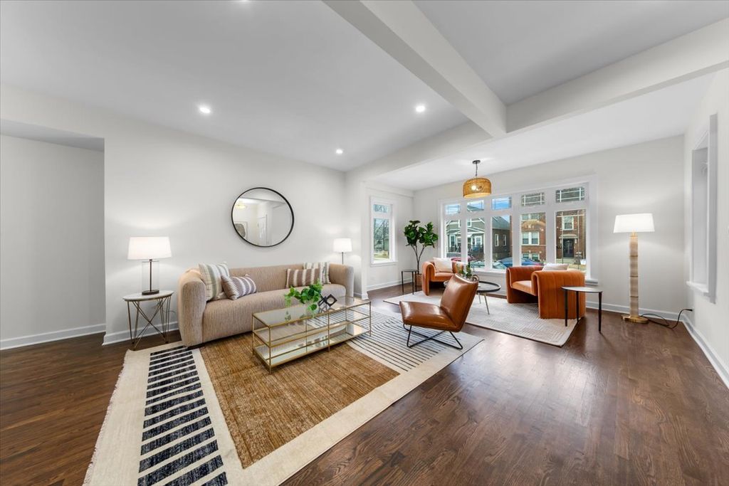 Step into a current yet timeless, newly rehabbed 4-bedroom, 3-bathroom home in the heart of Portage Park. Every inch of this property has been thoughtfully updated, blending modern convenience with charm. The heart of the home is the stunning new kitchen, a true showstopper, featuring stainless steel appliances, quartz countertops, a spacious island perfect for gathering, and gorgeous Zellige tile for texture. This kitchen is as functional as it is beautiful. Stylish light fixtures add a warm glow, while the rich hardwood floors flow seamlessly throughout the home, tying everything together. With four bedrooms and three beautifully updated baths, there's room for everyone to spread out and enjoy. On the second floor, the primary bedroom easily fits a king-size bed, a seating area, and a generously sized walk-in closet. The primary bathroom has a large double vanity and a walk-in shower. Here you will also find a second bedroom. The first floor also has a generously sized bedroom and full bathroom, perfect for guests or multi-generational living. In the light-filled basement are a fourth bedroom, a full bathroom, and a family room for cozy TV time and recreation. Located in vibrant Portage Park with the prolific Park and local shops like Portage Grounds just up the street, you will appreciate the convenience of Six Corners, the Expressway, and public transportation. This home is the perfect mix of modern flair and comfortable living-don't miss your chance to make it yours!