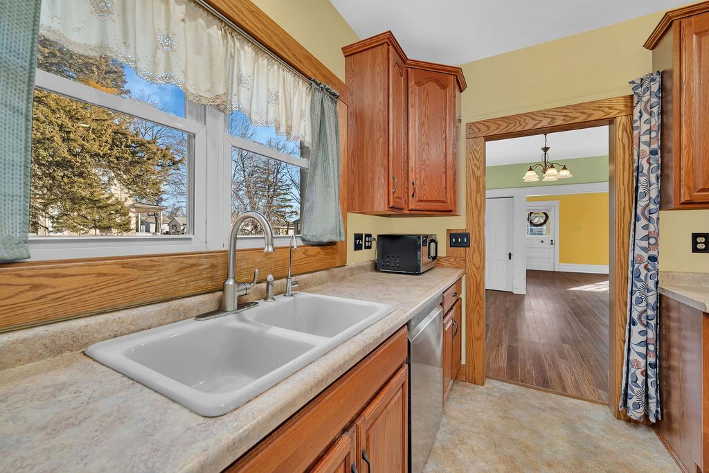 Located in the heart of Morris just a few blocks away from downtown, parks, shopping, and the hospital, this house is just minutes from anywhere you need to go. This home is simply too charming to pass up. From the moment you arrive, the newer concrete driveway, fresh sidewalks, and cedar picket fence create a warm welcome. Step into the expansive 21ft glass enclosed front porch-your new favorite spot for morning coffee or evening relaxation. Inside, the home's character shines. The open floor plan makes entertaining easy, with a living room featuring built-in bookcases that flows into both the dining room and family room with new vinyl plank flooring throughout. The updated kitchen and full bath add comfort and convenience. Upstairs, original hardwood floors have been beautifully refinished throughout all four bedrooms which include original built-ins and deep closets. A full basement and storage shed provide plenty of room for hobbies and seasonal items. The large, fenced yard is perfect for kids or pets and includes a garden and plenty of landscaping opportunities. This home offers newer windows, a high efficiency furnace, new gutters, updated electrical and a brand-new water heater in 2025. Close to schools, downtown shopping, dining and the hospital, this home blends history, charm, and practicality.