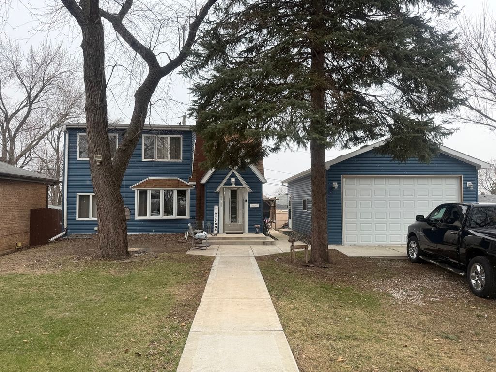 Welcome to this charming 3-bedroom, 2-bath two-story home located in the heart of Evergreen Park. This well-maintained residence offers a functional layout with spacious living areas and plenty of natural light throughout. The main level features a comfortable living room with large front windows, creating a warm and inviting atmosphere. The kitchen offers ample cabinet and counter space, updated flooring, and room for everyday dining and entertaining. A full bath on the main level adds convenience and flexibility. Upstairs you'll find generously sized bedrooms along with a second full bath. The home provides a practical layout ideal for related living, work-from-home needs, or growing households. Step outside to enjoy the yard space and a detached 2-car garage offering excellent storage and parking options. Property includes two separate PINs, offering additional value and flexibility. Situated on a quiet residential street close to parks, schools, shopping, and transportation, this home is a great opportunity to own in a desirable Evergreen Park location. Schedule your showing today.