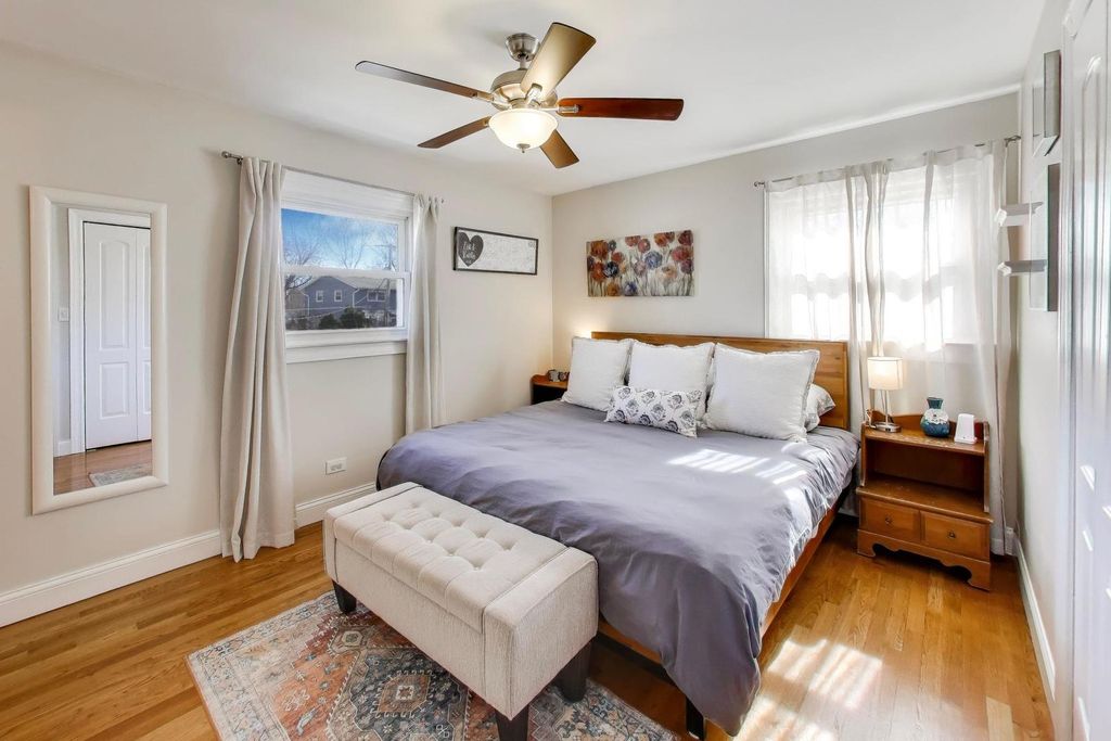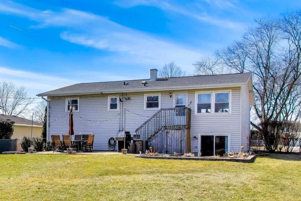 PLEASE SUBMIT ALL OFFERS BY 7PM SUNDAY 3/8. Move right into this bright, open 3 bedroom, 2.1 bath home with thoughtful updates throughout. Exterior improvements include a new roof and gutters (2021) and a new front door (2020), offering both curb appeal and peace of mind. Inside, the kitchen wall was removed in 2020 to create a seamless open-concept layout connecting the kitchen and main living area. The living room features a large bay window that fills the space with natural light, and hardwood floors run throughout, adding warmth and continuity. The primary bedroom features a private ensuite bath with updated shower tile and flooring (2021). The full hall bath was renovated in 2023 with new tile, flooring, and vanity. The lower level with a half bath offers flexible additional living space, ideal for a family room, play area, home office, or bar setup. Step outside to a spacious fenced in backyard with 2 patios, fire pit, and plenty of room to garden and entertain. Conveniently located near parks, golf courses, Costco, and just minutes to the elementary school. Additional updates include a new furnace (2025), AC (2022), water heater (2021), dishwasher (2024), refrigerator (2025), and dryer (2024)