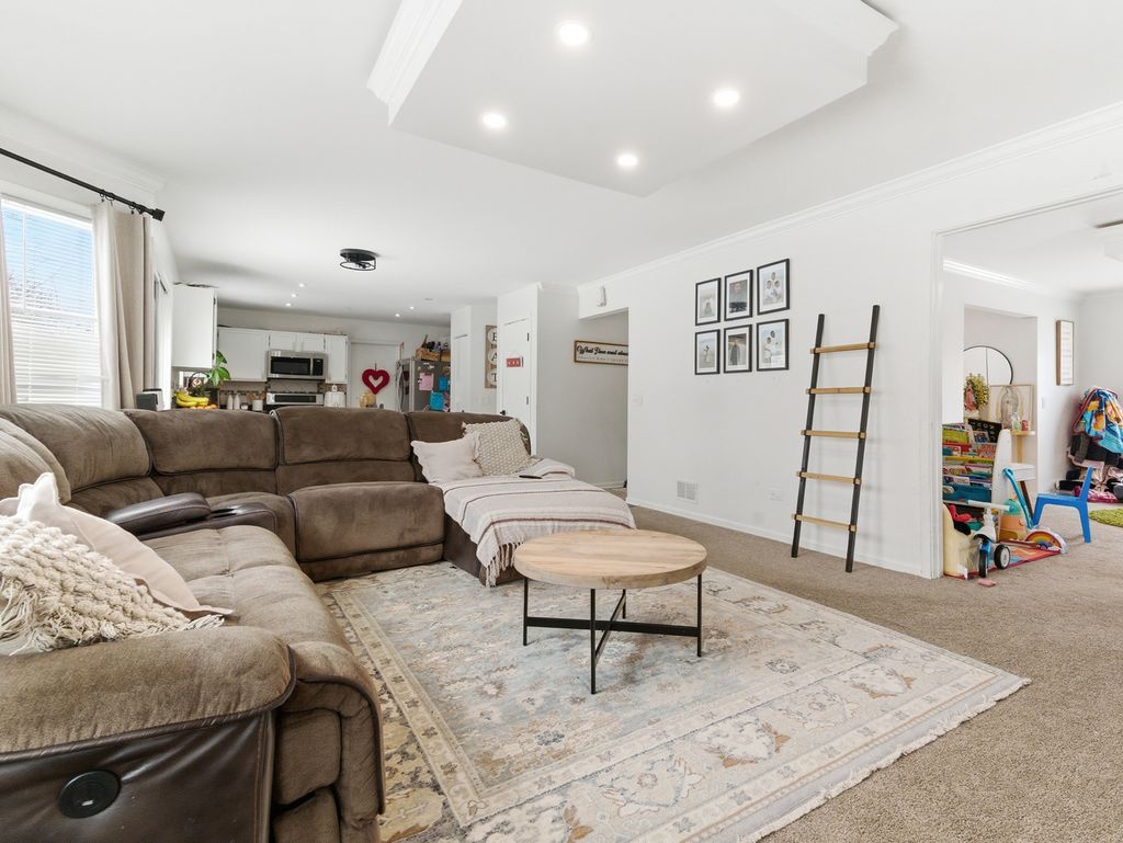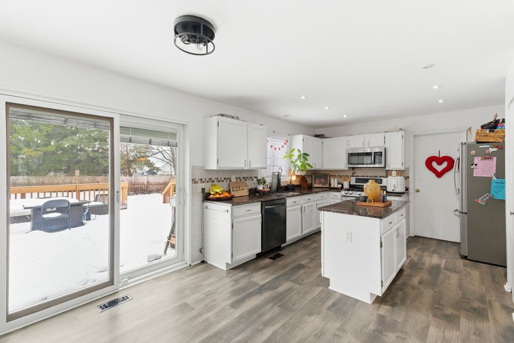 Welcome Home! Spacious 4BR, 2.1BA home featuring a finished basement, 2-car garage, and a large .39-acre fenced lot. Open floor plan with a well maintained kitchen offering granite countertops, stainless steel appliances, decorative backsplash, recessed lighting, and a island opening to the family room with a wood burning fireplace. Formal dining room and additional living room with doors provide flexible space for an office, den, or playroom. Convenient first floor laundry located off the garage with backyard access. Primary bedroom features a walk-in closet, vanity area, and private bath with soaking tub and separate shower. Finished basement ideal for entertaining with ample storage. Oversized deck with hot tub and fire pit. Numerous improvements completed over the years. Roof, windows, and vinyl siding installed in 2010. Furnace, A/C, and water heater replaced in 2020. Basement improvements and second floor carpet completed in 2022. Minutes to Gurnee Mills, Six Flags, restaurants, parks, schools, and I-94.