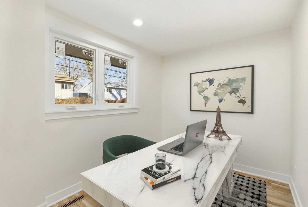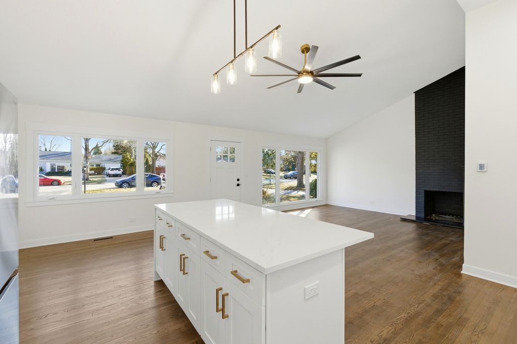 Modern sophistication meets mid-century charm. Step into a masterfully reimagined 3-bed, 2-bath residence, completely overhauled from the studs to the rafters. This isn't just a renovation; it's a total transformation. Buyers will enjoy ultimate peace of mind with all-new copper piping, updated electrical (including a panel upgrade), a new HVAC system, and brand-new windows featuring a lifetime glass warranty. The heart of the home is a chef-inspired kitchen, thoughtfully modernized with soft-close white shaker cabinetry, never-before-used appliances, and a striking oversized waterfall island. Seamlessly integrated smart technology, including WiFi-enabled appliances, thermostat, and garage access that connects to your phone, brings the home into the future. The open-concept main floor is bathed in natural light, highlighting the pristine hardwood flooring that carries through both levels. Retreat to the spacious primary suite on the second floor or enjoy the versatile walk-out lower level, which offers a private den/office, family room, and a dedicated utility room with a new washer/dryer combo. Outside of the aesthetic beauty, the home features a professionally vapor-barriered crawlspace for massive storage. Perfectly positioned near Old Orchard Mall, the 94 Expressway, and local hospitals, this turnkey gem offers an unbeatable North Shore lifestyle.