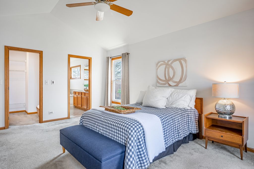 ** MULTIPLE OFFERS received. Please submit highest & best by 6pm Sat 4/4 ** Filled with natural light and windows in all the right places, this TWO STORY sits in a BEAUTIFUL neighborhood known for long-time neighbors and a fantastic SCHOOL DISTRICT - a home that simply feels right. FOUR BEDROOMS UPSTAIRS, an OFFICE, and LAUNDRY on the main level create everyday ease, while the TWO STORY ENTRY and updated WINDOWS AND EXTERIOR DOORS (2014) bring in light throughout. The main level includes a bright EAT-IN KITCHEN with large windows overlooking the backyard, a separate dining room, and a BRICK FIREPLACE anchoring the living space. Upstairs, the PRIMARY SUITE features VAULTED CEILINGS, WALK-IN CLOSET, and an ensuite bath with jacuzzi tub and updated shower. The FULL FINISHED BASEMENT adds flexible living space with PANTRY STORAGE, deep closets, and an additional crawl space. Outside, the PRIVATE backyard features a PAVER PATIO (2020), PROFESSIONAL LANDSCAPING, and mature trees for shade and privacy. A spacious 2.5 CAR GARAGE offers extended storage and workspace. Recent updates include new furnace and air conditioner (2026). Additional improvements: water heater, water softener, reverse osmosis (2021); refrigerator, washer, dryer (2017); dishwasher (2023). A well-maintained home in a neighborhood where people tend to stay - and where it's easy to see why.
