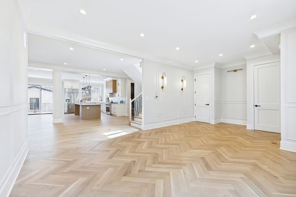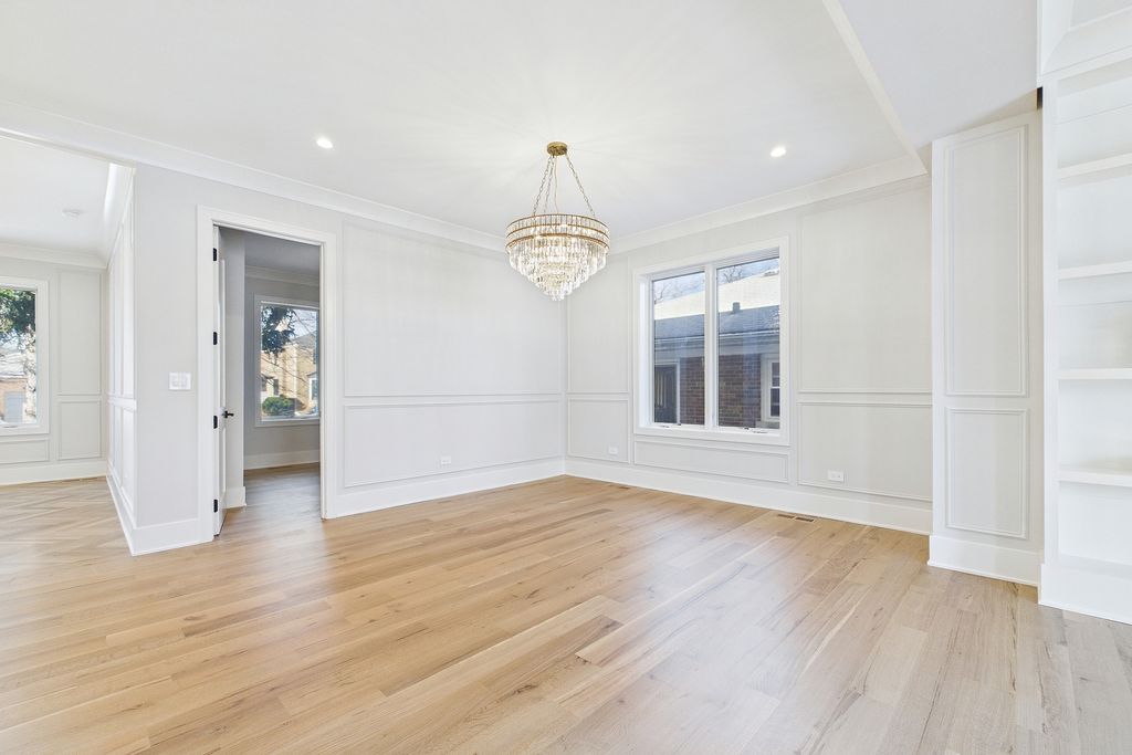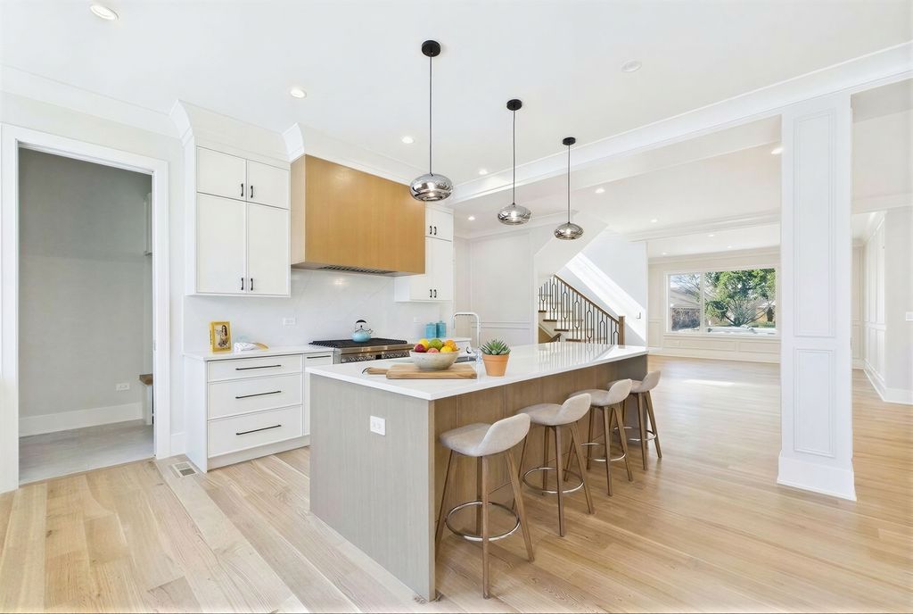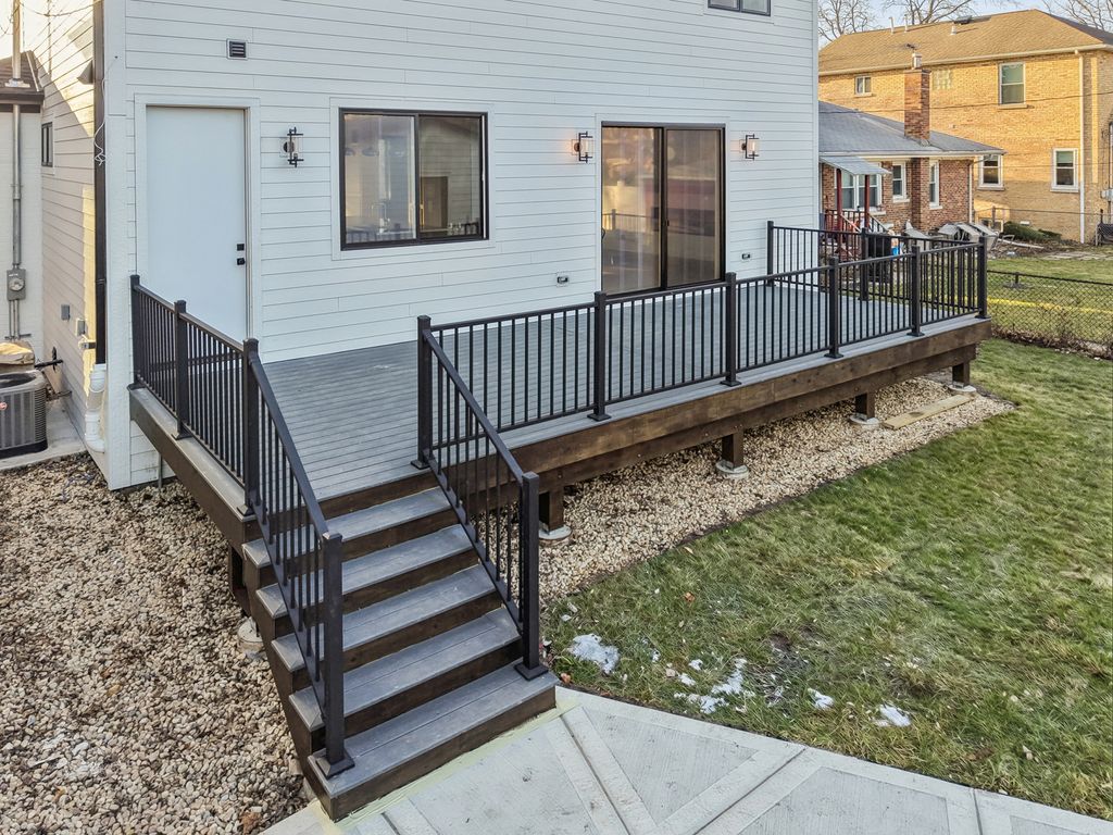Elegant 95% New Construction in the Highly Desirable Sauganash Neighborhood! This exceptional 5-bedroom, 4.5-bath residence showcases refined luxury, impeccable craftsmanship, and thoughtful design throughout. From the moment you step inside, the home offers an immediate sense of warmth and sophistication, blending timeless elegance with modern comfort. Designed with an expansive open floor plan, the home features stunning quarter sawn white oak flooring and exquisite custom millwork throughout, including detailed crown and wall moldings that elevate every space. The inviting family room with a built-in fireplace serves as the heart of the home-perfect for both everyday living and elegant entertaining. The chef's kitchen is beautifully custom-made kitchen with Dacor appliances, an oversized island with quartz countertops, and a pantry, seamlessly connecting to the main living areas. First floor bedroom ideal for your out of town guests. Cozy primary suite offers a true retreat, featuring a spa-inspired bath with heated floors, a stand-alone soaking tub, double vanity, body-spray shower, and a generous walk-in closet with custom organizers. Additional highlights include a functional mudroom with direct access from the deck, second-floor laundry, a full basement ideal for children's playroom, maintenance-free oversized deck, white privacy fence, and a high-efficiency furnace and a/c. Ideally located on a beautiful tree lined street, close to schools, golf course, downtown Edgebrook, forest preserves & Metra, this home combines sophisticated design, superior finishes, and an unmatched sense of comfort. Truly a place that feels like home from the moment you arrive!
