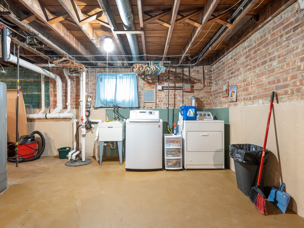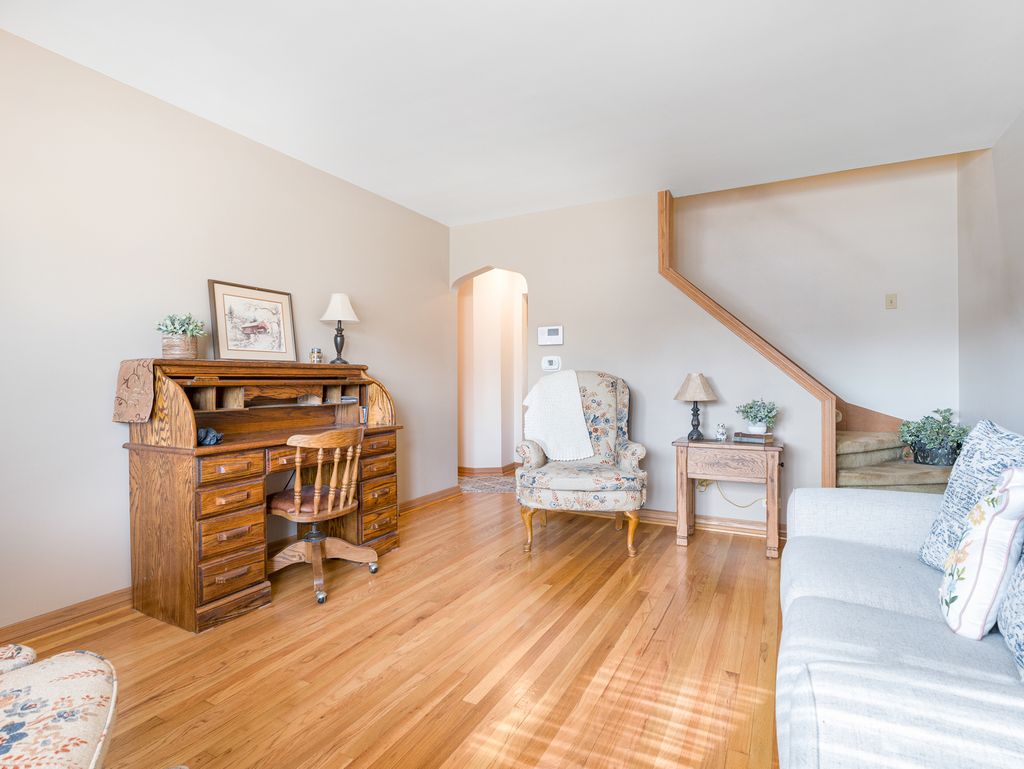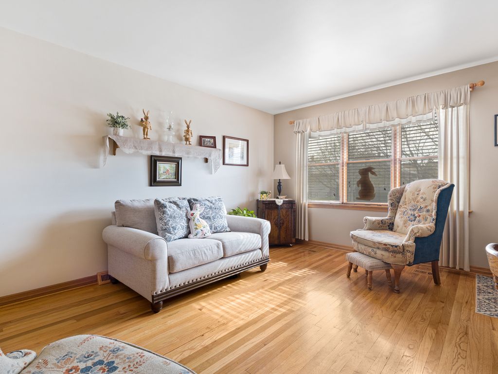 Impeccably maintained Elmwood Park 3 bedroom 2 bath English brick residence. This two story home features a full second floor addition. The first floor living room, dining room and bedroom have quality refinished hardwood floors. The full bathroom has white ceramic tile with a glass block window. The spacious oak cabinet kitchen has ceramic tile floors, stainless steel refrigerator and range with an adjacent dining room. The kitchen/eating space opens to a 23x13 family room addition and includes a convenient pantry space. The second floor addition has two generous sized (12x24) bedroom suites with abundant closet spaces. The full bathroom has a marble floor and oversized soaker tub. The full unfinished basement has high ceilings and provides an opportunity to add more finished space. It includes overhead sewers, a sump pump, a 10 yr old Lennox FA/CA unit with media air filter and whole house humidifier. Other improvements include Andersen Windows on first and second floor, new concrete side walks (2022), a newer 50 gallon hot water heater, and concrete pad in crawl space. The pleasant yard includes a 2.5 car garage with a party garage door and overhead loft space and is great for outdoor enjoyment!