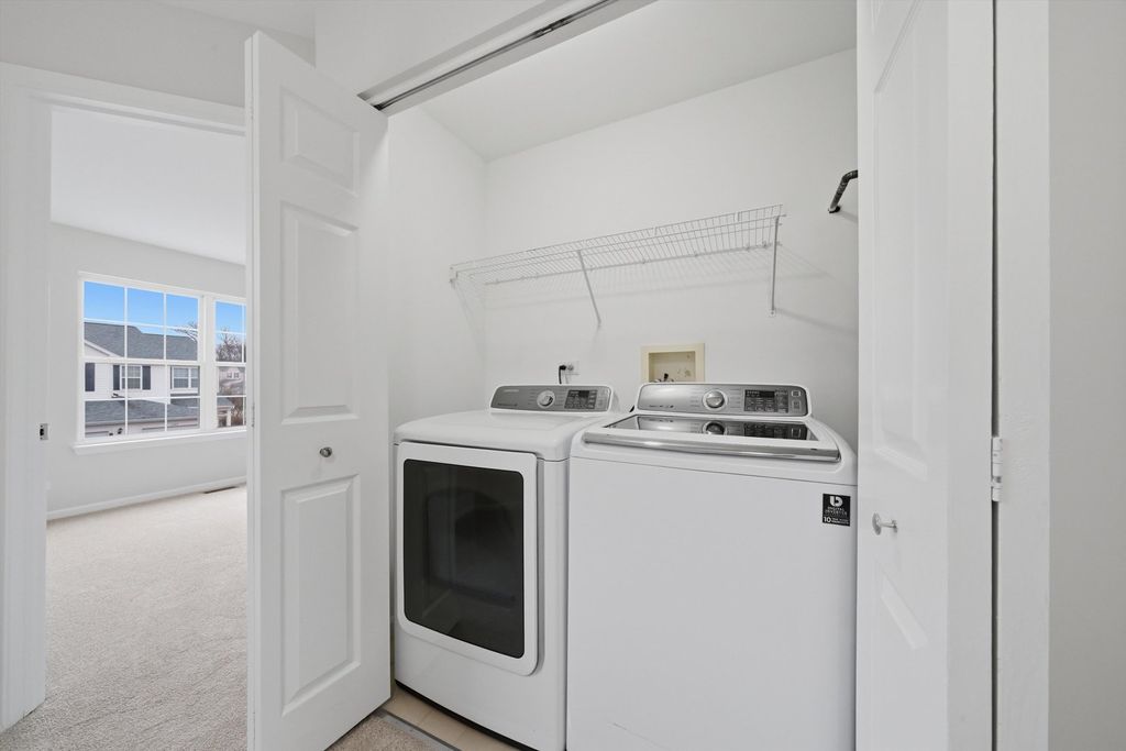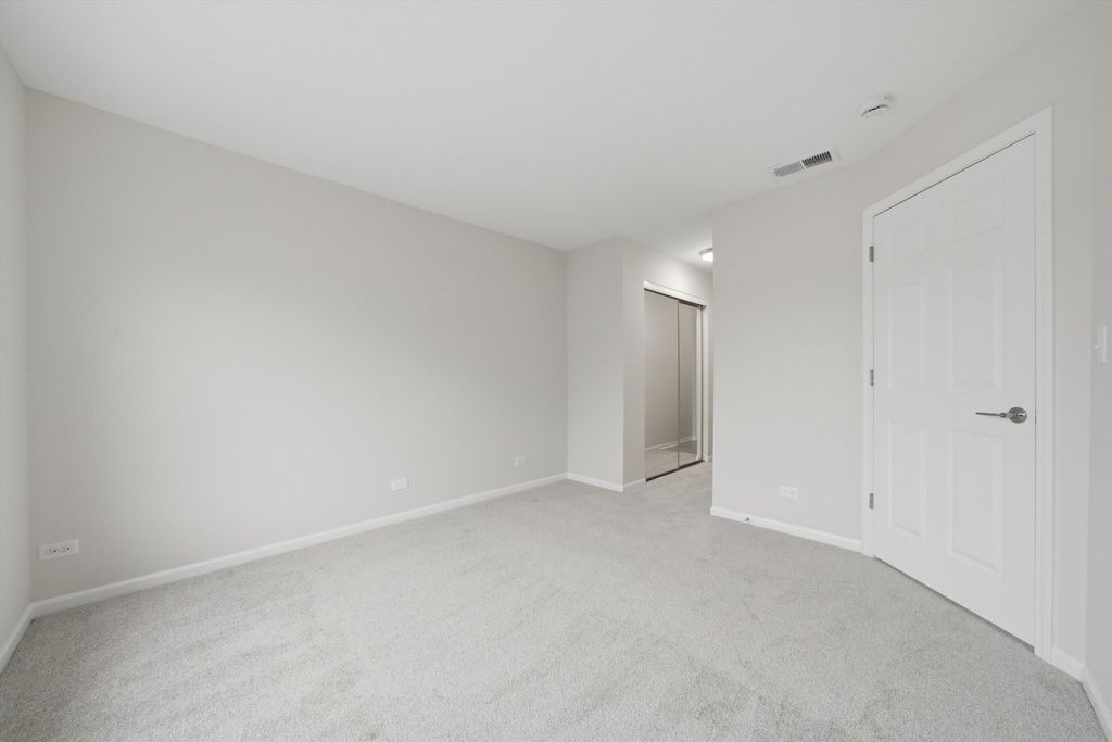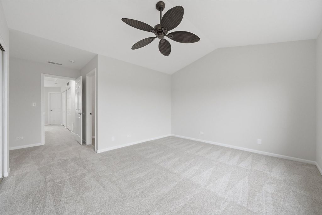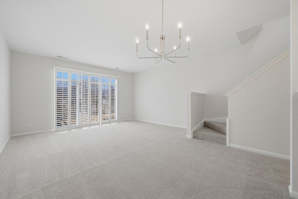 Move-in ready townhome featuring fresh paint and brand-new carpet throughout. The bright main living area flows into a well-maintained kitchen with oak cabinetry, stainless steel appliances, and great storage, plus the convenience of an in-unit washer and dryer and new water heater. Upstairs, the primary bedroom offers a dramatic vaulted ceiling and generous closet space, creating a spacious retreat. A standout feature is the private wooded area directly behind the home, providing rare privacy for townhome living. Excellent location close to shopping, dining, parks, and everyday conveniences in Carpentersville, making this a perfect blend of comfort, convenience, and low-maintenance living.