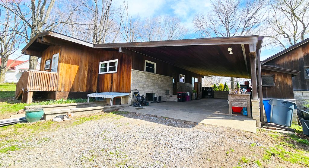 also included parcels 07-18-351-005 and 07-19-126-020. 24 HOUR NOTICE REQUIRED FOR SHOWINGS. Property at present is a working farm with over 18 acres. Enjoy the wildlife and and a varieties of mulberries, blackberries, and persimmons. In addition, there are Buckeye, Magnolia , and Hard Maple trees. This mid-century modern home has an open concept floor plan, with 3 BR and 3 baths, and a bonus room ideal for an office or recreation room. The kitchen has a functional island with electric, all stainless steel appliances, and an indoor charcoal grill. The living room has a gas fireplace with a Bedford stone hearth. The seller replaced the roof in 2023, A/C, added w mini-split units to basement, replaced most of the windows and added egress window to basement. The two outbuildings, both of which have electric, and one has multiple stalls ideal for keeping livestock, and the other has been used as a dog kennel. There is second house on the property that is 2BR/1 bath with updated HVAC and windows. Each house has its own septic system, propane tank, and electric meter. List of improvements and copy of survey are available documents. This property has an abundance of possibilities if you are looking for your own small farm, or just property with woods for enjoying what nature has to offer. Located close to town.