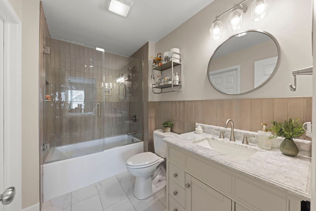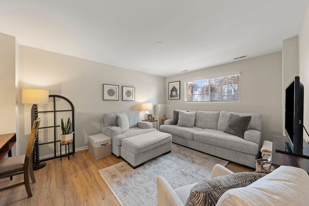 Stunning townhome in highly sought after Shelburne Crossing. As you enter, you'll be welcomed by soaring 9 ft ceilings and high-end finishes including a "Real Flame" fireplace with a gorgeous mantel that adds charm to this magnificent home. Every wall has been freshly painted to make this space light and bright, gorgeous window treatments have been added to all of the windows for a cozy yet luxurious feel, all new upscale light fixtures have been added to every room and beautiful luxury vinyl plank flooring has been installed throughout. In the kitchen, you'll enjoy an abundance of cabinetry with custom hardware, a large pantry, an island for extra seating, newer Frigidaire Gallery stainless appliances, new kitchen faucet, beautiful dining space and a sliding door to a private balcony. A spacious laundry room and storage off of the kitchen area make for the utmost convenience and easy living. Bathrooms have been updated with mixed metal accents and high-end custom tile. Each bathroom has new fixtures including new faucets, comfort height toilets and a frameless shower door in the main bath. The generously sized primary bedroom has a large walk-in closet with plenty of shelving and the two additional bedrooms have large closets with drawers and shelving units for your storage convenience. The lower level offers additional living space with a ground level window, giving it a light and airy feel and access to attached 2 car garage. This home also comes with a state of the art Ring thermostat, video doorbell, and security system. TRANE HVAC, radon mitigation system and all newer mechanicals (2024) which offer peace of mind. There is plenty of storage and the two car attached garage has a custom pulley system to store items overhead for added space and ease. Don't forget about the gorgeous waterways and walking trails throughout Shelburne Crossing, which provide serenity, stunning views and the opportunity to enjoy nature at its finest. It's the perfect setting to enjoy biking, running or daily walks. Ideally located less than a mile from the Winfield Metra station and Central DuPage Hospital, this home offers peaceful living with unbeatable convenience. Don't miss this truly turnkey home in one of Winfield's most sought-after communities!
