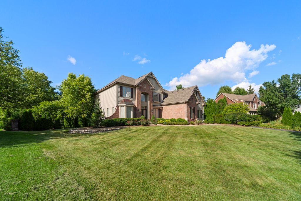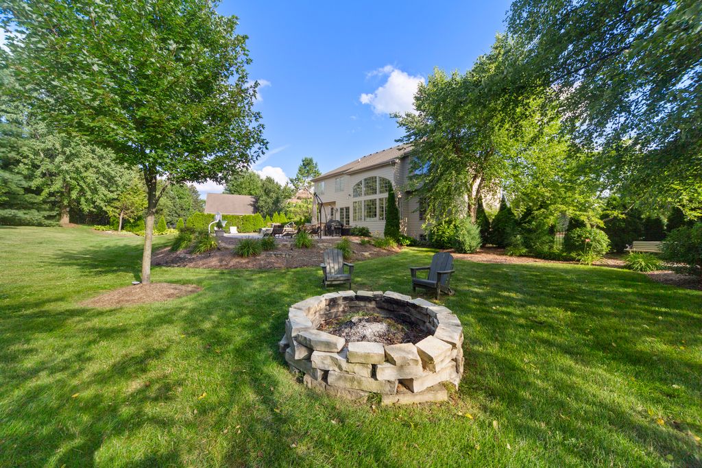 Experience refined living in the highly sought-after Tradition of St. Charles subdivision. Situated on a sprawling 0.61-acre lot, this beautifully crafted John Hall home (2003) offers a timeless blend of elegance, comfort, and abundant natural light. The grand great room showcases a dramatic two-story window, creating a bright and inviting atmosphere. An open floor plan, accented by crown molding and freshly painted interiors, flows seamlessly throughout. The upgraded kitchen features newer appliances, custom backsplashes, rich cabinetry, quartz countertops, and Kohler fixtures-perfect for both everyday living and entertaining. The main level includes a formal dining room with butler's pantry, private office, and powder room. Upstairs offers four bedrooms, three full baths, a second-floor laundry room, and a spacious primary suite overlooking the serene backyard with stunning sunset views. Step outside to a private retreat featuring a new brick paver patio, mature arborvitae trees, and a meticulously landscaped, fully fenced yard. The resort-style backyard includes a sparkling in-ground pool and built-in hot tub with Diamond Brite finish, new energy-efficient pump, lighting, and bubblers. The finished English basement provides versatile living space with a fireplace, full bath, and areas ideal for entertaining, fitness, or hobbies. With extensive upgrades-including a new roof in 2023-this exceptional home sets a new standard for upscale suburban living in St. Charles. Schedule your private showing today and experience the elegance firsthand.