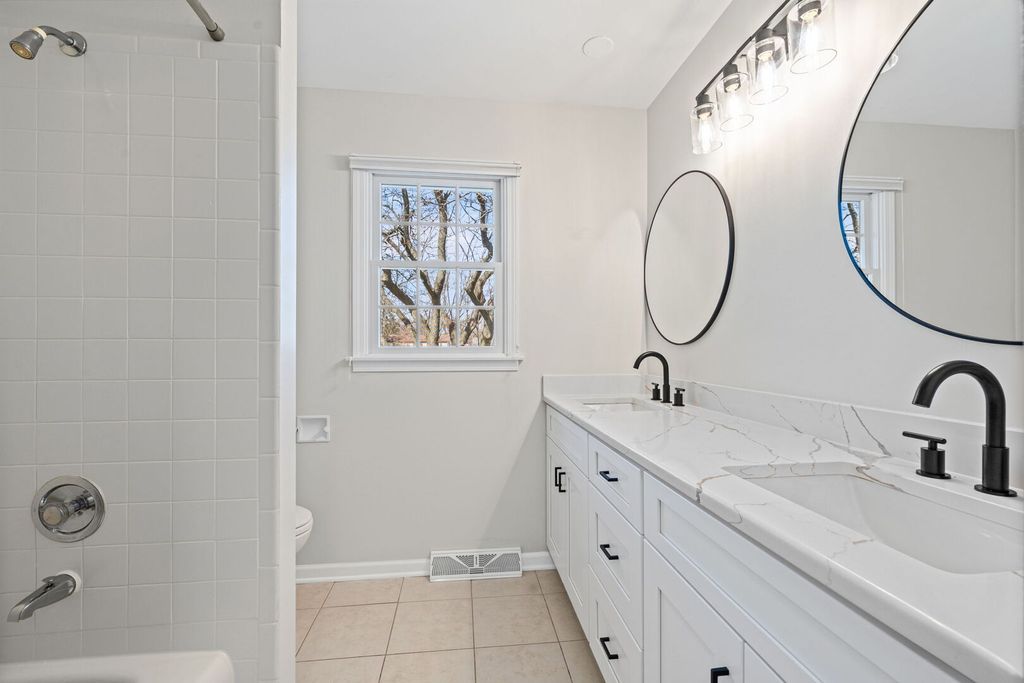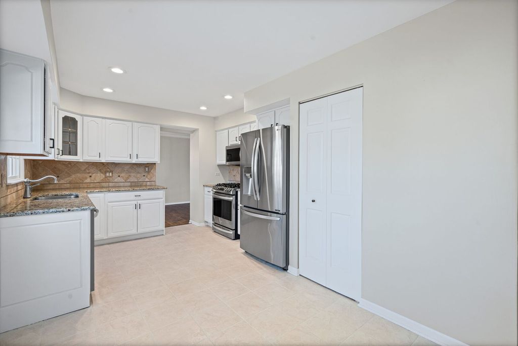 This spacious, sun-filled home is truly move-in ready! Freshly painted in today's popular colors, it features white six-panel doors and trim, elegant crown moldings, and many thoughtful updates throughout. The large kitchen offers white cabinetry, stainless steel appliances, granite countertops, a pantry closet, and recessed lighting. It opens to a generous eating area with a beautiful bow window that fills the space with natural light. The kitchen flows seamlessly into the huge family room, where gleaming hardwood floors and a classic brick wood-burning fireplace with a gas starter create the perfect setting for cozy winter nights. Hardwood floors continue through the living room, dining room, and all bedrooms, adding warmth and charm throughout the home. The powder room, hall bath, and primary bath have all been remodeled or updated with today's stylish finishes. The spacious primary suite features two large closets and a convenient laundry chute. There are additionally 3 other great sized bedrooms all on the second level. Major updates provide peace of mind, including a roof that is only 13 years old, and a furnace, air conditioner, and water heater that are just 5 years old. The windows have also been replaced. Step outside to enjoy the huge fenced backyard with a large patio-perfect for summer barbecues, entertaining, or relaxing with family and friends. The basement offers plenty of potential and is ready for your finishing touches. Ideally located near parks, top-rated schools, and shopping, this wonderful home is ready to welcome its next owners.