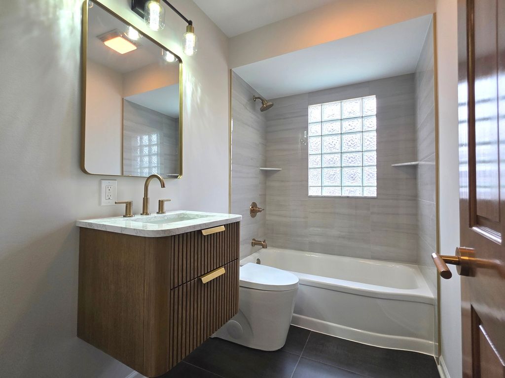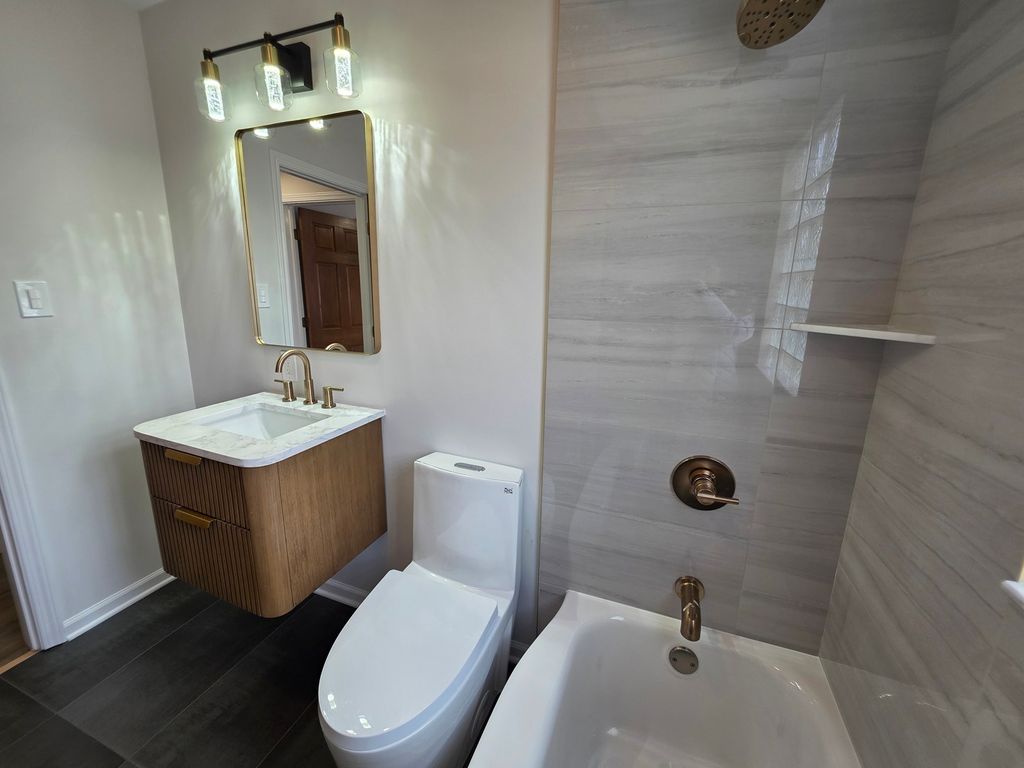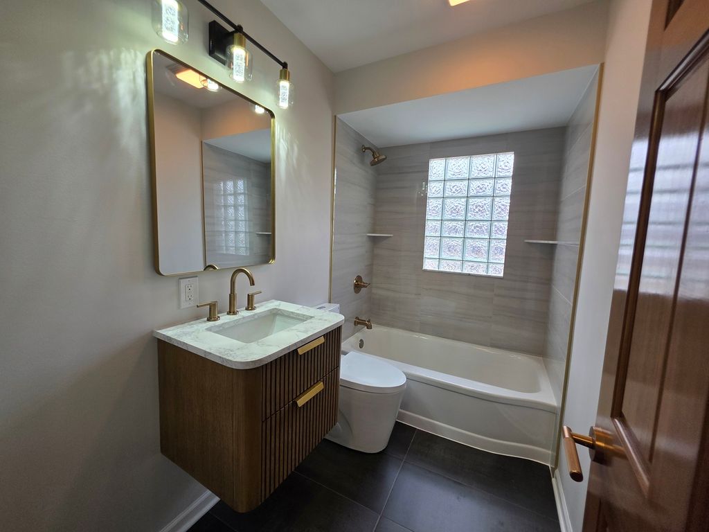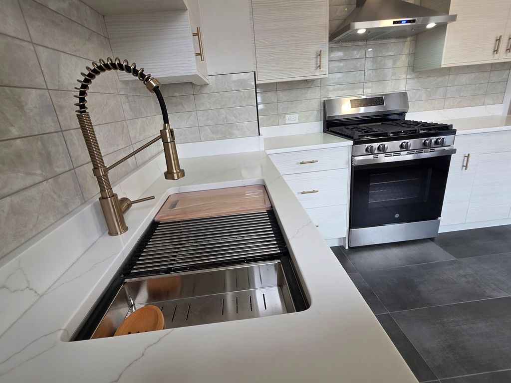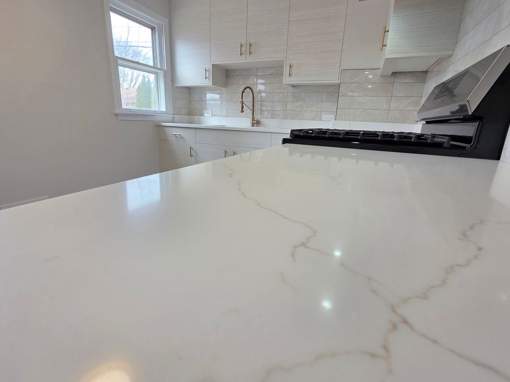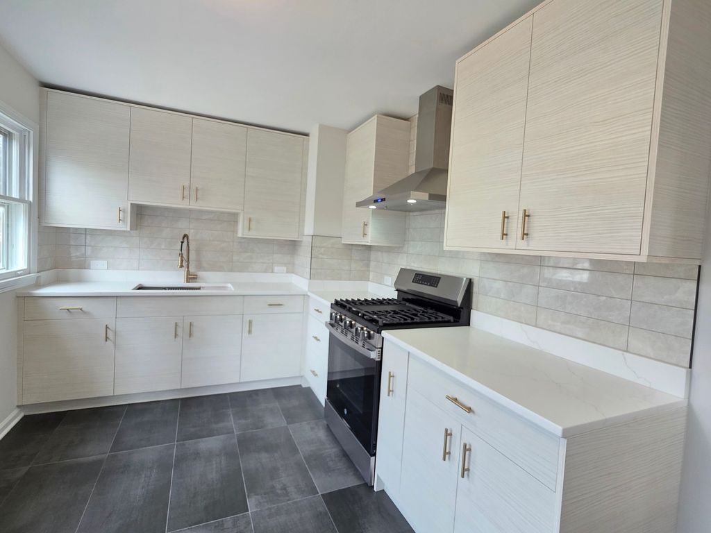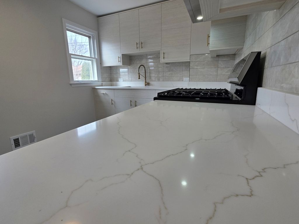 Welcome to this ranch-style home, featuring 2 bedrooms, a finished attic, full basement, 2-car garage, modern kitchen with quartz countertops, stainless steel appliances, and a deep stainless steel sink. The kitchen and bathroom have nice tile floors; the bathroom also features a beautiful shower and floating sink. Maple hardwood floors flow seamlessly through the main floor and attic, complemented by strong wooden doors and nice windows throughout the house for natural lighting.