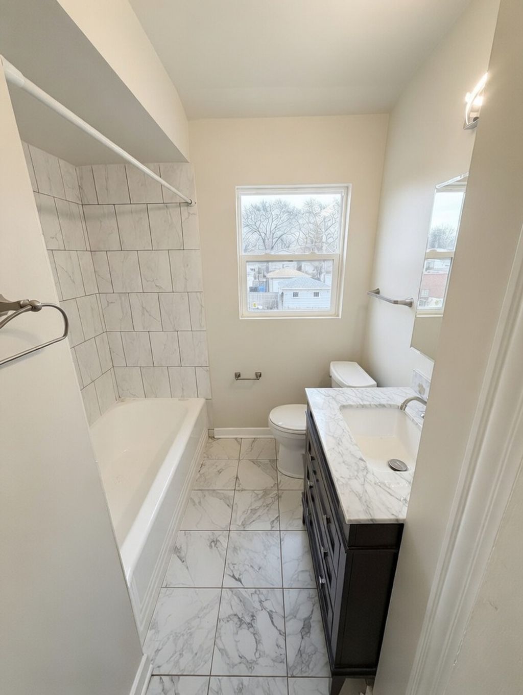 Newly remodeled 3-bedroom, 1.5-bath home located in the desirable Galewood area. Main level features hardwood floors throughout and a living room with a fireplace. Kitchen offers ample cabinet space with classic wood cabinetry and recessed lighting, along with stainless steel appliances including a gas range, built-in microwave, refrigerator, and dishwasher. Updated flooring provides a clean, refreshed feel. Two bedrooms and a renovated full bathroom on the second floor. Finished basement includes 1 additional bedroom and half bath. Exterior features a 2-car concrete garage pad. No HOA. Situated on a quiet street near Amundsen Park. Conveniently located within walking distance to public transportation, parks, and local amenities. Move-in ready.