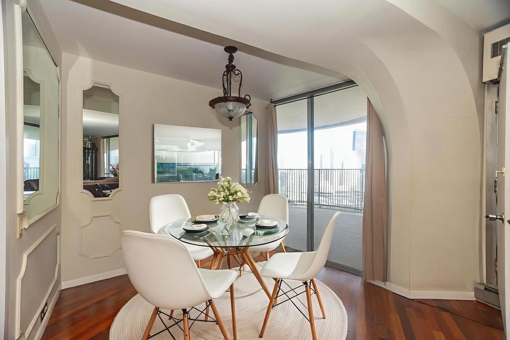 Experience iconic Marina City living from the 56th floor of this architectural masterpiece designed by Bertrand Goldberg, a student of Mies van der Rohe. This updated 2-bedroom, 2-bath residence offers sweeping panoramic views to the East, Southeast, and Northwest-showcasing Lake Michigan, the Chicago River, the skyline, and even stretching to Northwest Indiana and Michigan on clear days. Inside, a newly renovated kitchen with sleek stainless steel cabinetry and finishes pairs beautifully with rich hardwood floors throughout. Three private balconies invite you to enjoy the ever-changing cityscape-watch boats along the river, city lights at dusk, or fireworks over Navy Pier. The location is unmatched: steps to the Chicago Riverwalk, Magnificent Mile, Michigan Avenue, and the Loop, surrounded by world-class dining, shopping, entertainment, and coffee shops. Convenient access to all CTA train lines, bus routes, expressways, and nearby Ogilvie & Union Stations makes commuting effortless. Close to top employers in the Financial District and West Loop, and directly across the river from the new Google office. Building amenities include 24-hour door staff, indoor leased parking, on-site dry cleaners, a lower-level pedway with grocery and dining options, bars, and 10-Pin Bowling. This is city living at its finest.