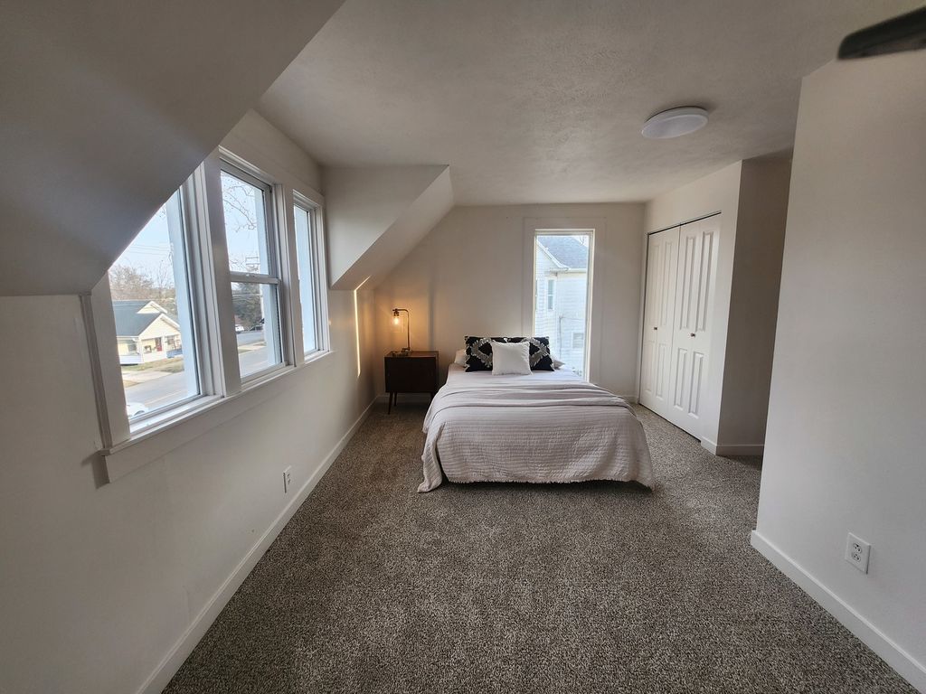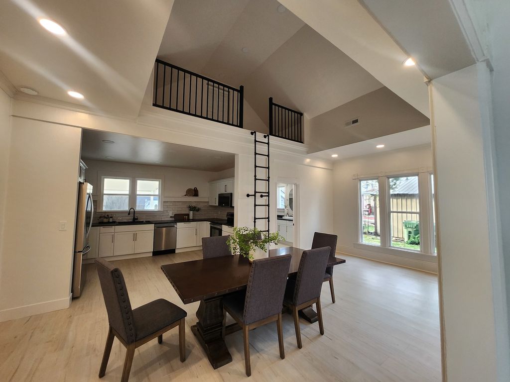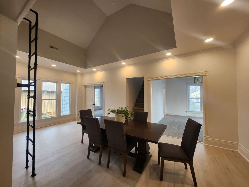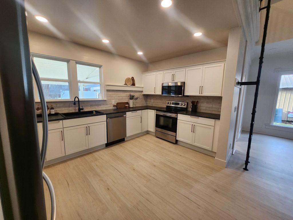 This stunning historic home will be ready for viewing on March 20th - nearly new after recent renovations - original 1891 features remain with 2026 updates - welcoming entry foyer with ornate front door and tiled flooring leads to Living room - floor plan offers central spacious dining room open to LR and new kitchen - climb the modern industrial stairs to the perfect loft quiet space - lower level laundry room with storage space - Master bedroom with double closets - main level bathroom features custom tiling and large vanity - upper bedrooms with adequate closets and full upper bathroom - New roof - covered side patio with new concrete - updated plumbing and wiring - fresh white walls and all new flooring -super clean home with exceptional decor - full of character