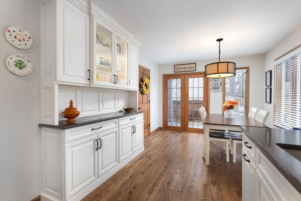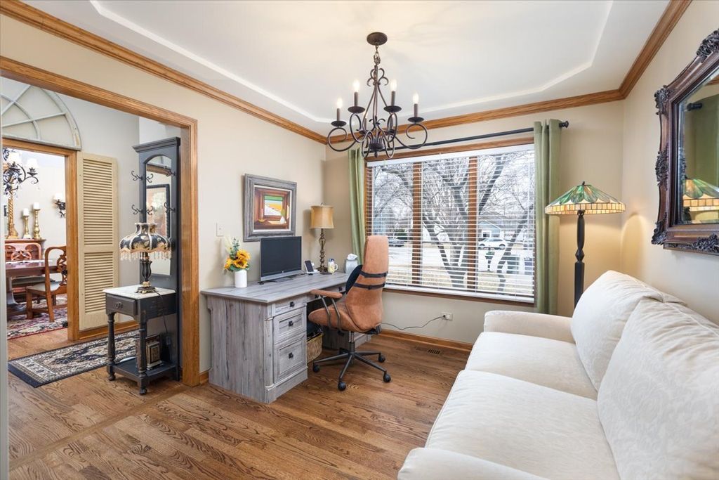 Welcome home to this exceptional residence where timeless elegance meets thoughtful modern updates. The location puts you at the heart of some of Naperville best outdoor spaces and numerous parks and trail systems, and blocks to Kingsley elementary in district 203. A two-story foyer with an updated staircase, rich hardwood floors, and abundant natural light sets the tone for the beautifully appointed interior. The remodeled chef's kitchen is a true centerpiece, featuring custom Amish-crafted cabinetry, quartz countertops, under cabinet and recessed lighting, and newer stainless steel appliances, all seamlessly opening to the inviting family room anchored by a cozy fireplace and an impressive wall of custom built-in shelving. The home's refined character continues an elegant formal dining room adorned with crown molding and a tray ceiling, perfect for memorable gatherings. Upstairs, the luxurious primary suite offers cathedral ceilings, dual closets with organizers, and a beautifully renovated spa-inspired bath with dual vanities, a soaking tub, and a separate shower. Three additional spacious bedrooms provide ample closet space, while a charming skylight fills the upper level with natural light. The finished basement adds exceptional entertaining space with a stylish wet bar and convenient half bath. Outdoors, the private backyard retreat features an amazing New paver patio, fire pit, pergola, low voltage lighting, outdoor speakers, overlooking a fenced, and lush mature landscaping, creating the perfect setting for relaxation or entertaining. Additional highlights include Anderson windows (2018), EcoBee smart thermostat, new closet organizers throughout, epoxy-coated garage floor, invisible fence, vented attic, Full exterior paint in 2023, new roof approx. 2017, New LeafGuard gutter system, and a charming storage shed. Ideally situated near Knock Knolls Park and Nature Center, miles of scenic walking and biking trails, premier shopping, dining, and entertainment, and located within the highly acclaimed District 203 schools, this remarkable home offers a rare blend of luxury, comfort, and an outstanding location. Welcome Home!