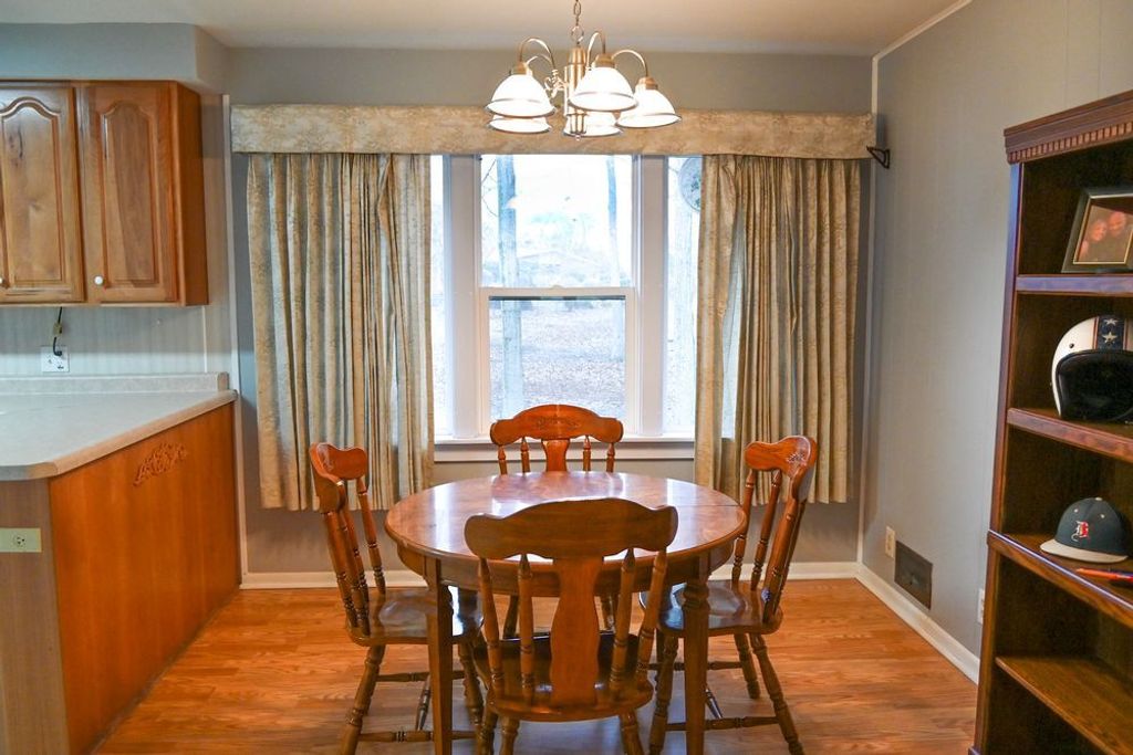 Come home to this 4 could be 5 BR ranch with 3 full baths! The house has a full basement with plenty of room for family, living or projects and is equipped with its own bath and workshop area. You'll find the interior clean and move-in ready with plenty of cabinets in the kitchen and an adorable breakfast nook to start your mornings. The living room is spacious as well. There is plenty appealing about the outdoors too since it sits on a nice sized lot with beautiful, woodsy views on a dead-end road while still being close to in-town conveniences. Single-car attached garage with a storage area, as well as, a detached garage with a door big enough to accommodate your RV which means you can start paying yourself for storage! All NEW appliances stay including refrigerator, over the counter microwave, stove with air fryer; garage fridge stays too! Updated windows and Master bathroom and hallway bathroom both were completely gutted and are new! Need space indoors and out? We've got you covered! Come see for yourself all this home has to offer!
