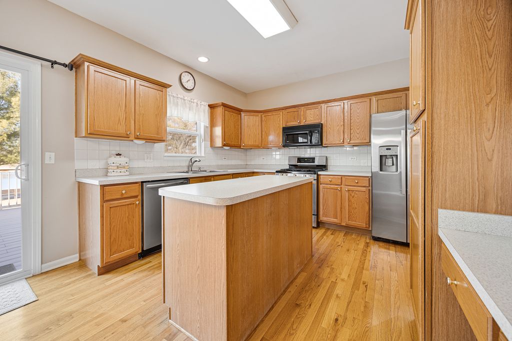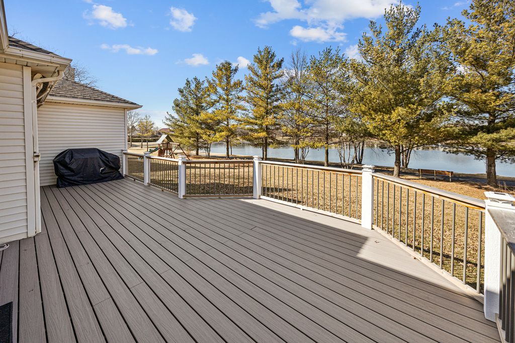 SITTIN' PRETTY, backing to Lake Thornwood & the walking trails, this original owner's home has been lovingly cared for! One of the rare ranch style homes in Thornwood Subdivision! Beautiful hardwood floors and 9 foot ceilings on 1st floor! Island kitchen w/eating area, newer stainless appliances & new Pella sliding door to the expansive Trex deck (2025), where you'll enjoy serene views of the picturesque lake and surrounds. Comfortable floor plan has spacious living room w/new Velux skylites and formal dining room. Large master suite features walk-in closet & ensuite bathroom w/double vanity sink. Convenient first floor laundry room w/utility sink & new washing machine. 30 year architectural shingles were new in about 2024 & water heater in the last few years! Basement has roughly 1247 sq.ft. of space for storage/future finishing plus 460 sq.ft. of concrete crawl space. Enjoy the wonderful amenities this community has to offer at the Sports Core, which features a 7,000 sq.ft. multi-use clubhouse, junior Olympic pool, tennis, basketball, sand volleyball & playgrounds. The Sports Core routinely hosts events tailored to children & families to promote an active lifestyle. They even have their own swim team! Walking distance to Corron Elementary School, located in the subdivision!