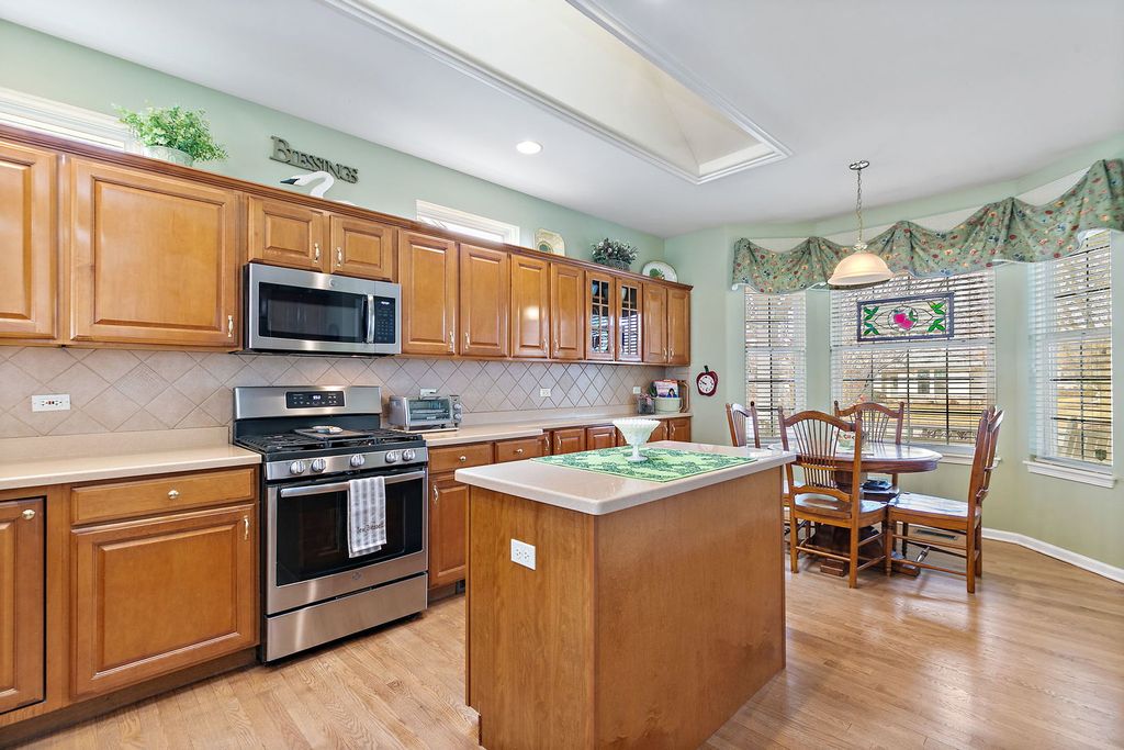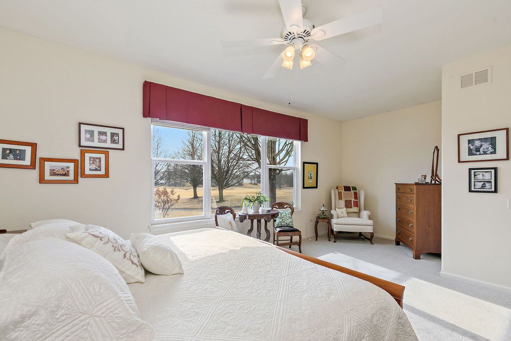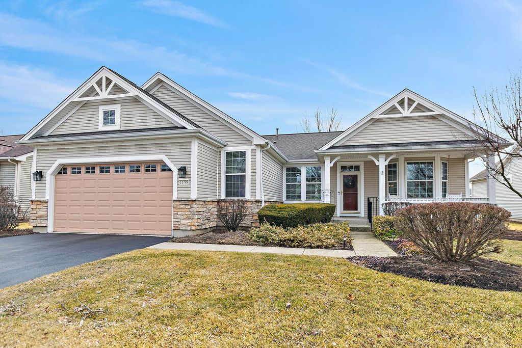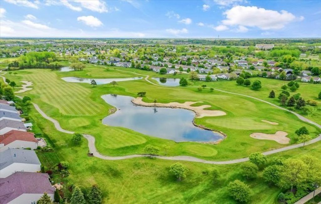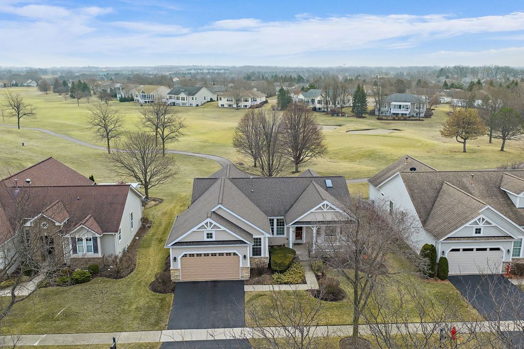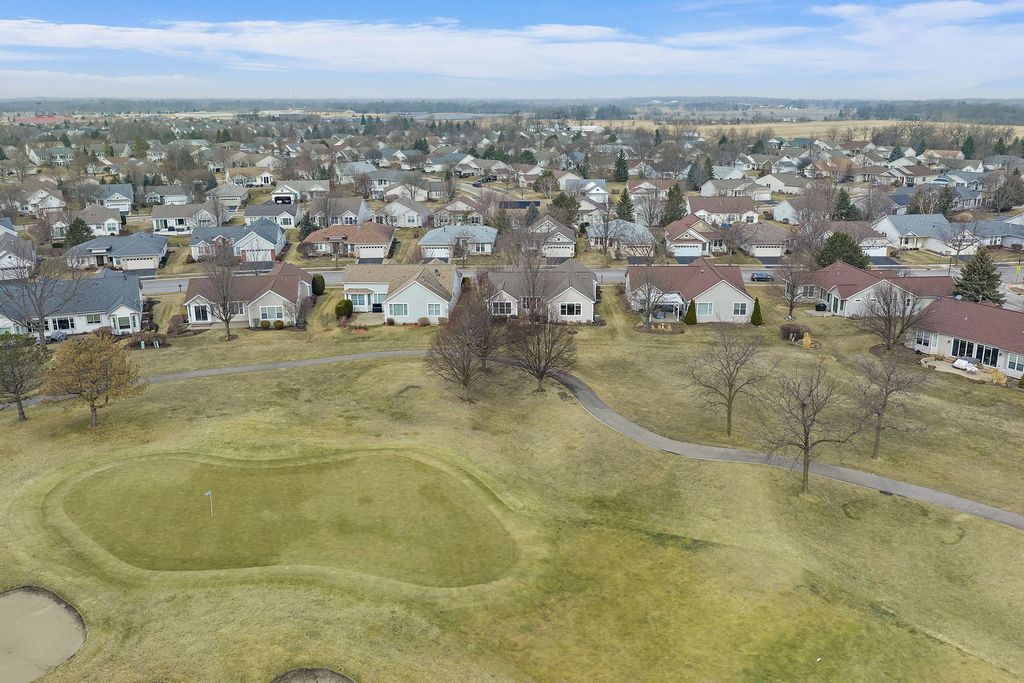 Located on the golf course in Del Webb Sun City Huntley, this beautifully maintained and popular ranch model offers comfort, space, and the exceptional lifestyle of one of the Midwest's premier 55+ active adult communities. The home features 3 bedrooms, 2.5 baths, wood flooring, a cozy fireplace, a bright sunroom, and a private den, with a thoughtfully designed layout ideal for both everyday living and entertaining. The updated kitchen includes maple cabinetry, stainless steel appliances, and Corian countertops (2022). The finished basement (2008) adds significant living space with a wet bar, abundant storage, and includes a mini refrigerator, standalone freezer, and additional refrigerator that will remain with the home. There is a small workshop area with sink/cabinets and workbench. The 3rd bedroom in the basement is currently being used as a sewing room. Major updates include roof (2014), furnace (2016), A/C and garage door opener (2019), furnace humidifier (2023), sump pump (2024), and water heater (2025). Additional features include a radon mitigation system, 2.5-car garage, brick paver patio, sprinkler system, full front porch, and professional landscaping, all set within a vibrant community offering golf, tennis, pickleball, bocce, pools, fitness centers, softball fields, woodworking shop, and numerous clubs and activities.